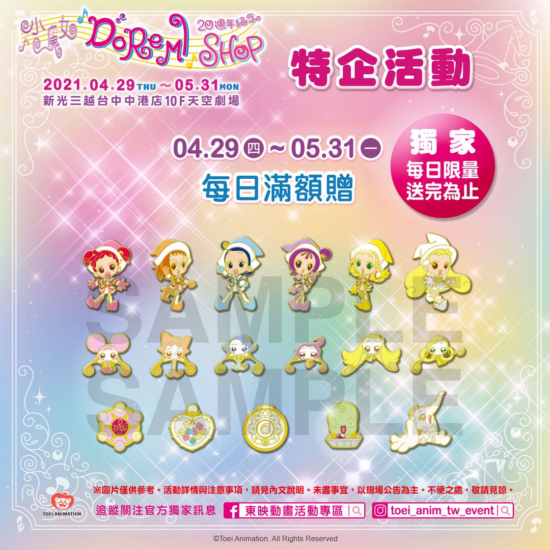 ▼快閃一個月期間,週週都會祭出精彩的主題特企內容!除了每週限定的人物印章,每天還有限量的滿額贈徽章、找出壞咒語卡活動!開幕首四日(4/29-5/2)至粉絲團按讚、拍照發文即贈波隆紙卡;5/8-5/9一起歡度DoReMi的母親節,消費滿599則可獲得小花寶寶手冊卡片;5/15-5/16消費滿799則可獲得20周年紀念徽章;5/20-5/23結帳時念出當日指定角色的魔幻舞台咒語,即可獲得當日限定角色立牌;5/31一起來歡送魔法堂,消費滿999元則可獲得魔法堂招牌卡片一張。