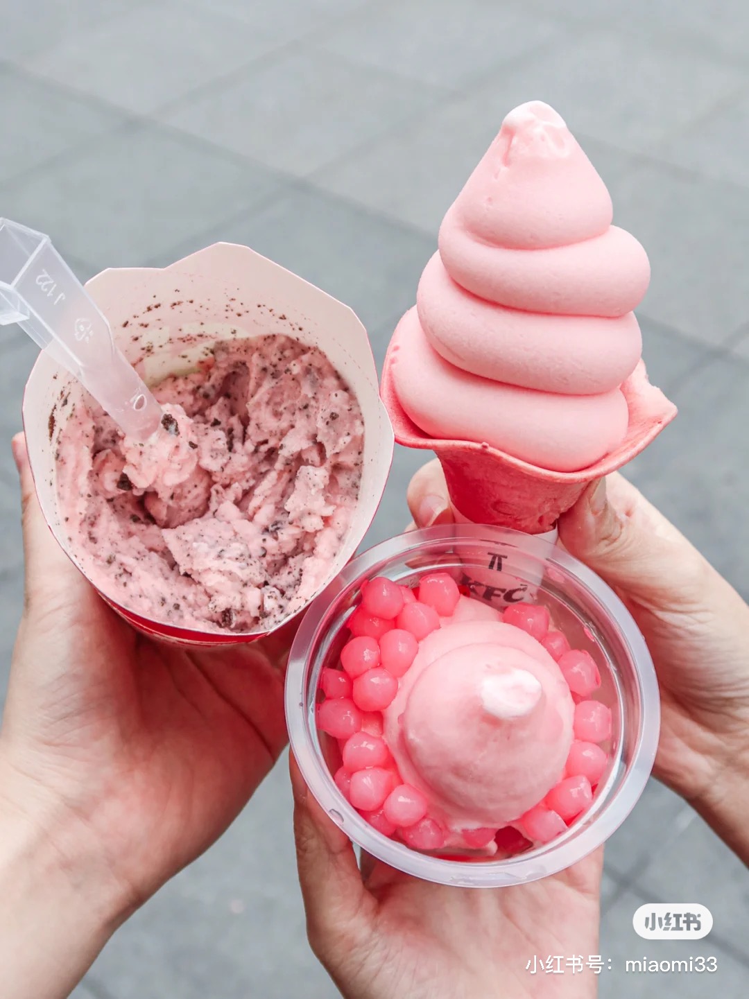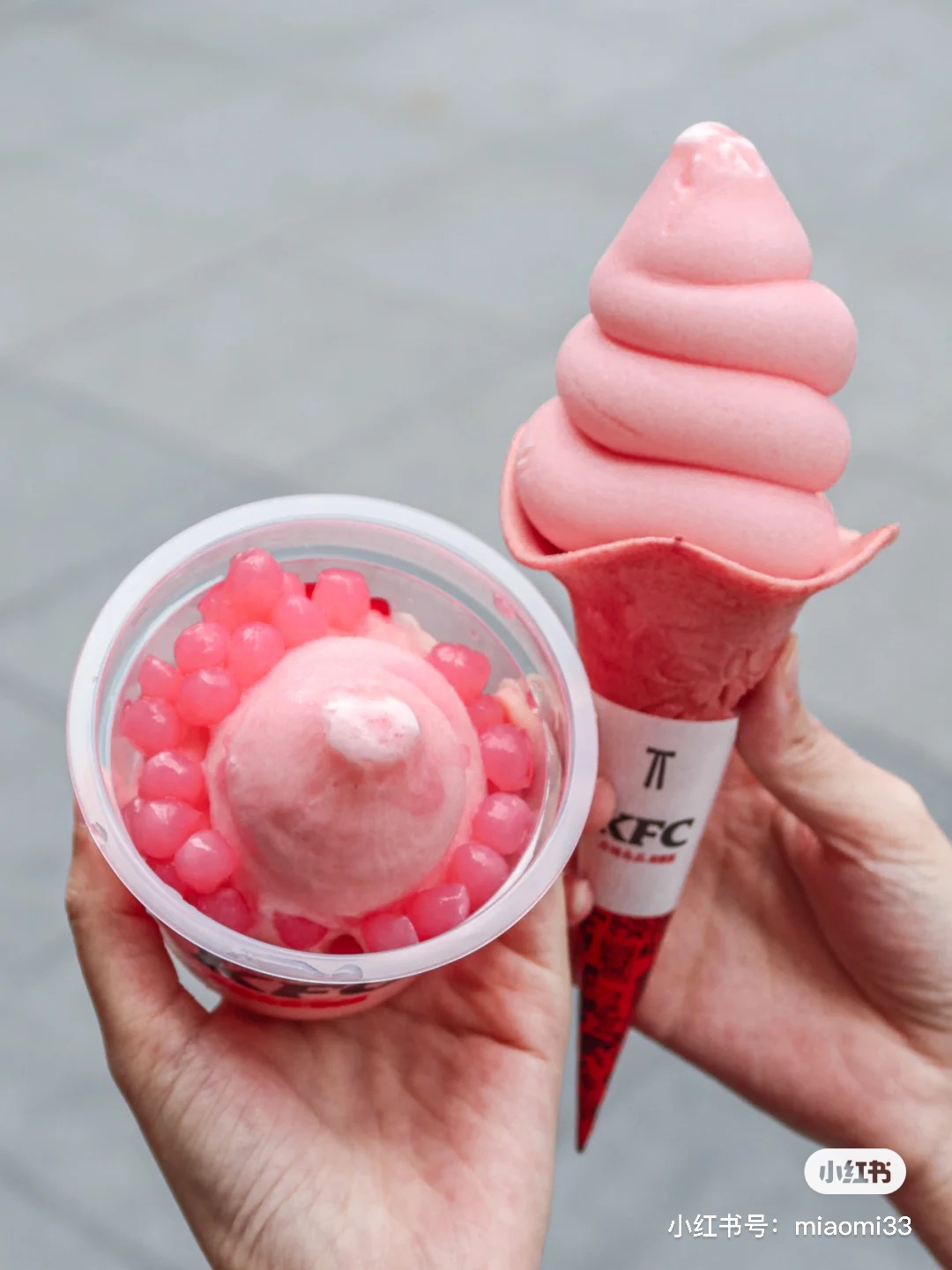 2021年04月15日現在少女都在流行吃這款霜淇淋!大陸肯德基繼上次推出阿華田聯名冰品之後,近日在推出三款全新冰品「白桃風味粉紅色冰淇淋」,香香甜甜的白桃風味,配上粉嫩到不行的霜淇淋顏色,就連餅乾杯也變粉色餅乾杯,光是拿著霜淇淋,就有自帶少女濾鏡的效果了!