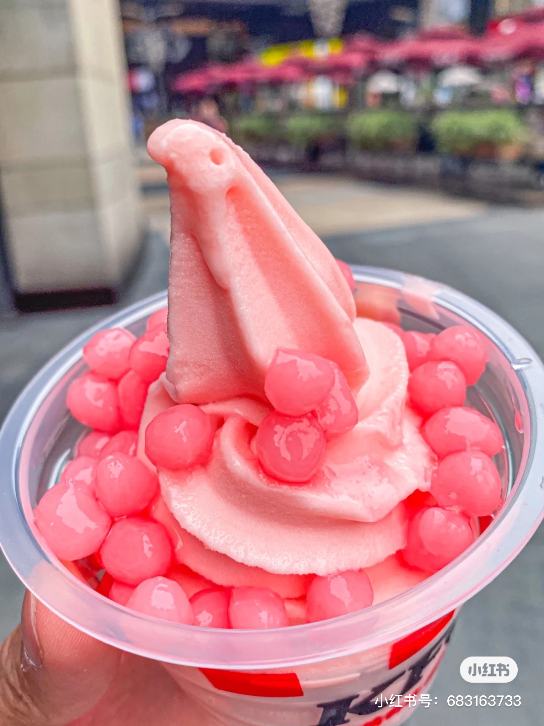 ▼除了霜淇淋之外,肯德基還有推出「粉紅聖代啵啵」同樣也是蜜桃風味霜淇淋,在霜淇淋旁加上一圈紛紅色的QQ珍珠,甜滋滋的霜淇淋配上口感Q彈的珍珠,療癒的口感讓人忍不住一口接一口停不下來~~