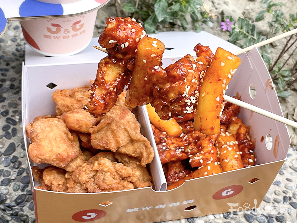 ▼繼光香香雞熱推的「台韓雙雞分享餐」(售價NT $225)也是必吃,其中韓式炸雞嚴選鮮嫩無骨雞胸肉,高溫現做將鮮嫩肉汁都封鎖住,淋上特製的「韓式甘醬」,撒上芝麻粒搭配Q彈年糕,不管是一人獨享還是與朋友同樂都超美味~