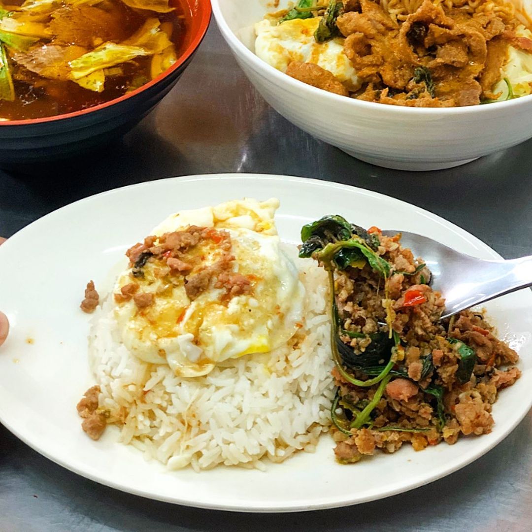 ▼另外還有「打拋豬肉飯」(NT$ 110)鹹香入味的豬肉,辣度、鹹度剛剛好,配著熱騰騰的白飯和半熟荷包蛋一起吃超對味!
