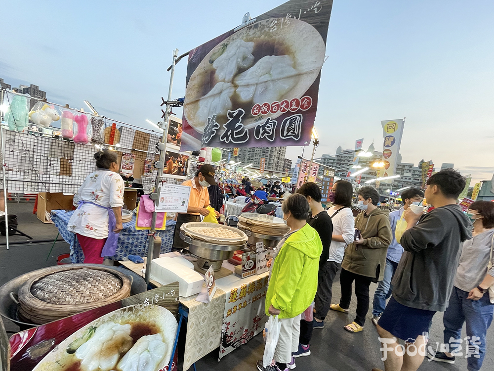 ▼位於台中大慶夜市的「蓮藕梅花肉圓」,天色都還沒暗就有許多客人已在排隊,可見他的名氣不一般。