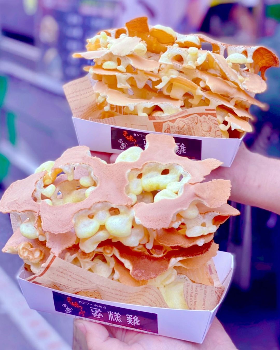 ▼快看看這個!這到底是雞蛋糕還是在玩積木啦?!獨特形狀的雞蛋糕蓋了好幾層樓,特別的形狀其實藏了多種不同口感。「手燒蛋糕雞」人氣招牌「原味三重奏」,不但外型浮誇,本身也很有巧思,可以看到有厚有薄的蛋糕體。