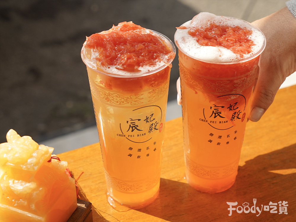 ▼「宸妃殿」對於茶飲有一貫的堅持,除了自身有製茶廠及契作茶園,在品質上也是嚴格把關,只為了能讓大家在享受茶飲時喝得安心又健康。近期新推出的新品「龍柚青茶」採用四季春茶加高山茶粒冷淬的「龍涎青茶」作基底,搭配水果之王「紅鑽葡萄柚」,果肉酸甜搭上陣陣茶香,清新解膩完全是夏日消暑聖品~