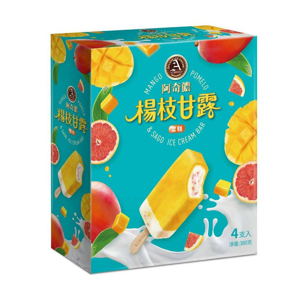 ▼香港最消暑的人氣甜品也化身為冰棒了!「阿奇儂雪糕-楊枝甘露」外層採用枋山愛文芒果製成,內層則是特調椰奶搭配西柚果肉做成的冰淇淋,額外添加西米露果凍增加咀嚼感,上層再用鮮奶油芝士冰淇淋畫龍點睛,風味清爽不膩保證讓人一口接一口~