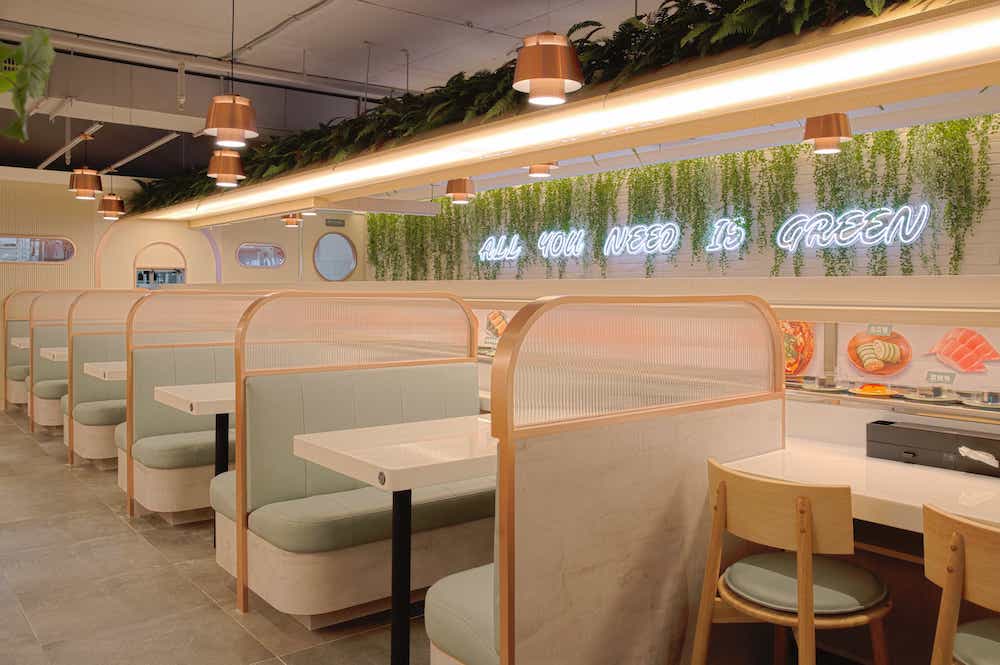 ▼供餐分上層列車主要供應現點現做溫熱類餐點,下層迴轉台提供壽司、小食類品項,更貼心為全素食者準備40款以上商品選擇。此次新品牌匯集百款蔬食,除了滿足素食者的胃,更歡迎葷食族到店體驗驗截然不同的蔬食味覺!