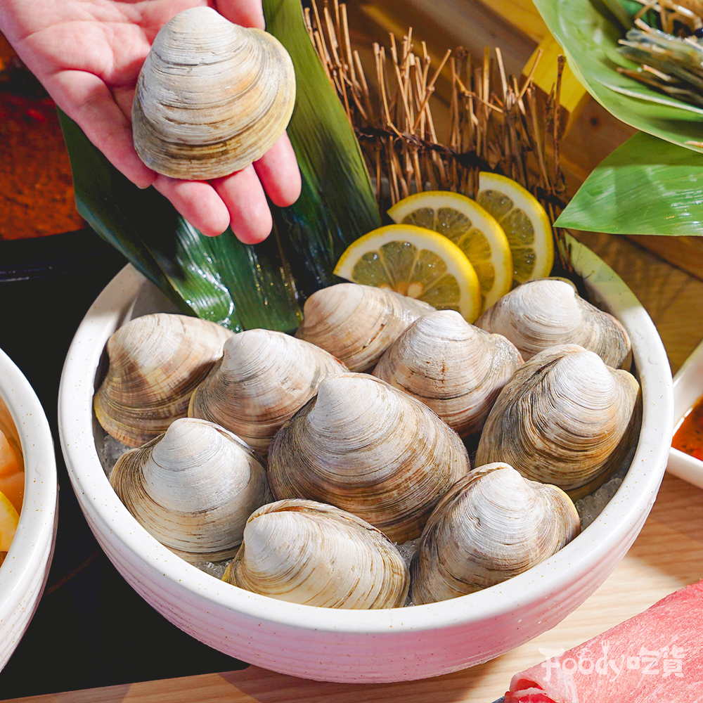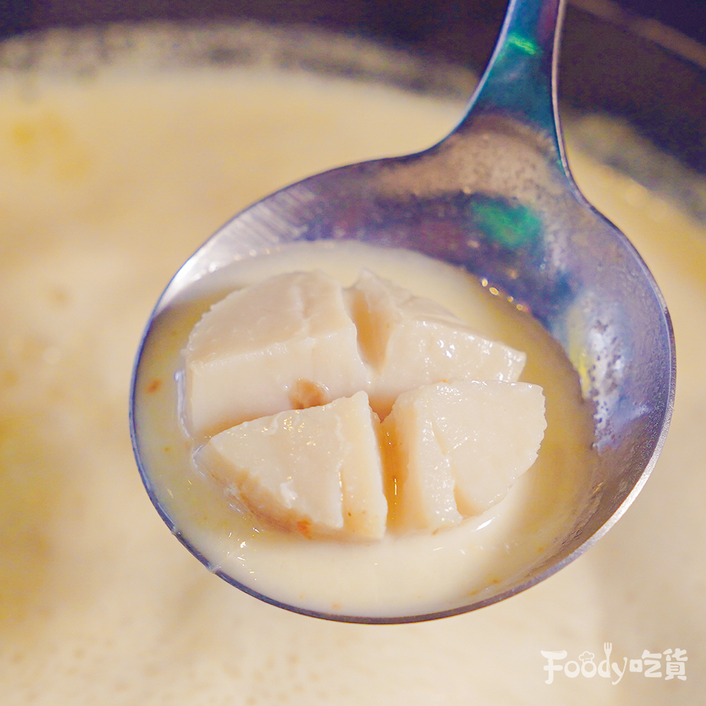 ▼再來就是海產控必嗑的海產三連發!「牛奶貝鍋」直接擺出一整盅、共有11顆超大牛奶貝,一顆顆肥嫩飽滿越吃越爽;「真.生食級干貝鍋」更是直接端出15顆生食級干貝,看白嫩的干貝排排站,瞬間就療癒。