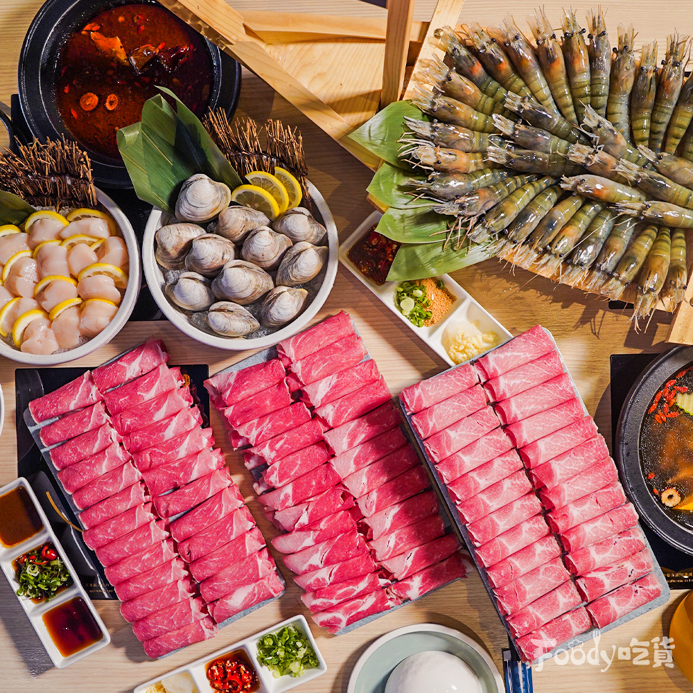 主餐|牛奶貝鍋 788元、真.生食級干貝鍋 1188元、36盎司精選大肉盤 1288元、36隻泰國蝦 1988元