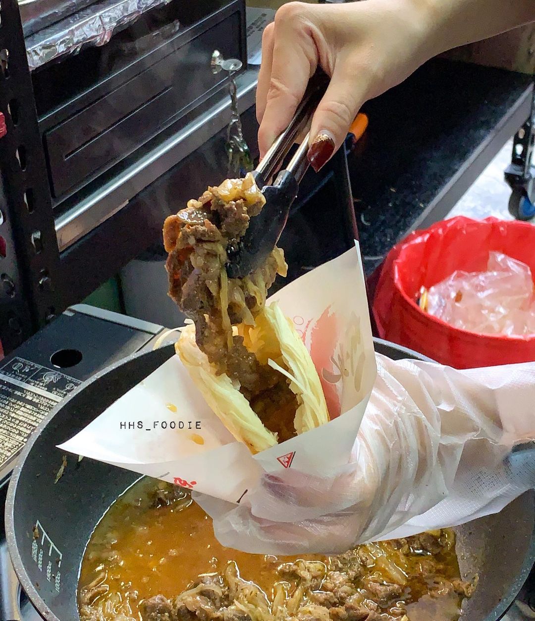 ▼人氣必點絕對是「招牌老滷肉」,鍋裡撈出鹹香味十足的肥嫩滷肉,肥瘦適中切碎放入夾饃裡,外餅酥脆內餡吃起來鮮嫩多汁,讓人忍不住一口接一口狂嗑!
