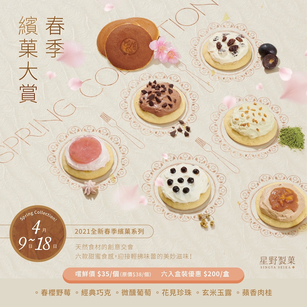 2021年04月28日春天降臨惹~星野銅鑼燒也趁著春天,推出最能代表春季的新品「春櫻野莓」,把春天的代名詞-櫻花,留在最美的綻放時節,加入酸甜清爽的野莓一起入餡,粉嫩系銅鑼燒萌翻少女心~