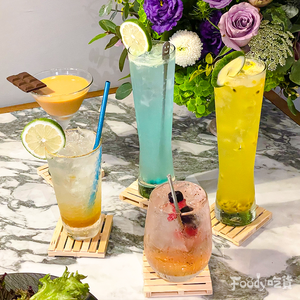 ▼EARTHA以創意水果感調酒為主,清爽酸甜滋味,適合搭配口味較濃重的燒肉。『風和日荔』以荔枝果酒結合日本燒酎、莓果、氣泡水,果香酸甜,充滿氣泡感;『跌倒再爬起山岭靜悄悄』藍色漸層的夢幻感,帶有迷迭香草本香氣,爽口沁涼;『蜜蜜桃子』融合蜜桃果泥、日本燒酎及氣泡水,輕盈酸甜;『陽光下燦爛』使用整顆新鮮百香果加入伏特加、君度橙酒,果香馥郁;『失身奶茶』以泰式奶茶調和伏特加,佐黑巧克力,濃郁香甜,搭配甜點享受微醺酒感。