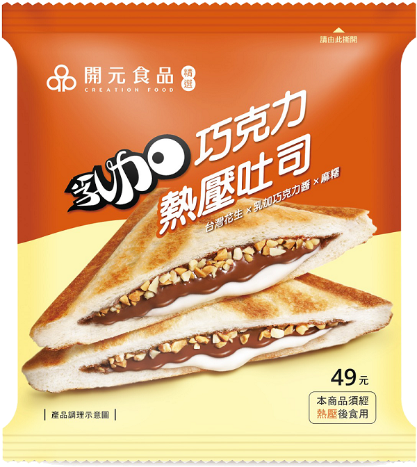 2021年05月04日7-ELEVEN隱藏美食再加一!去年3月推出全新結構-熱壓吐司,目前已於超過500間門市限定販售,自5月5日起祭出全新「乳加巧克力」口味,復刻經典國民商品乳加巧克力風味,以內餡濃郁巧克力加上脆粒花生,搭配現烤口感焦脆的吐司,無論當作早餐或午茶甜點、宵夜,到7-ELEVEN 都能隨時享用現壓美味。