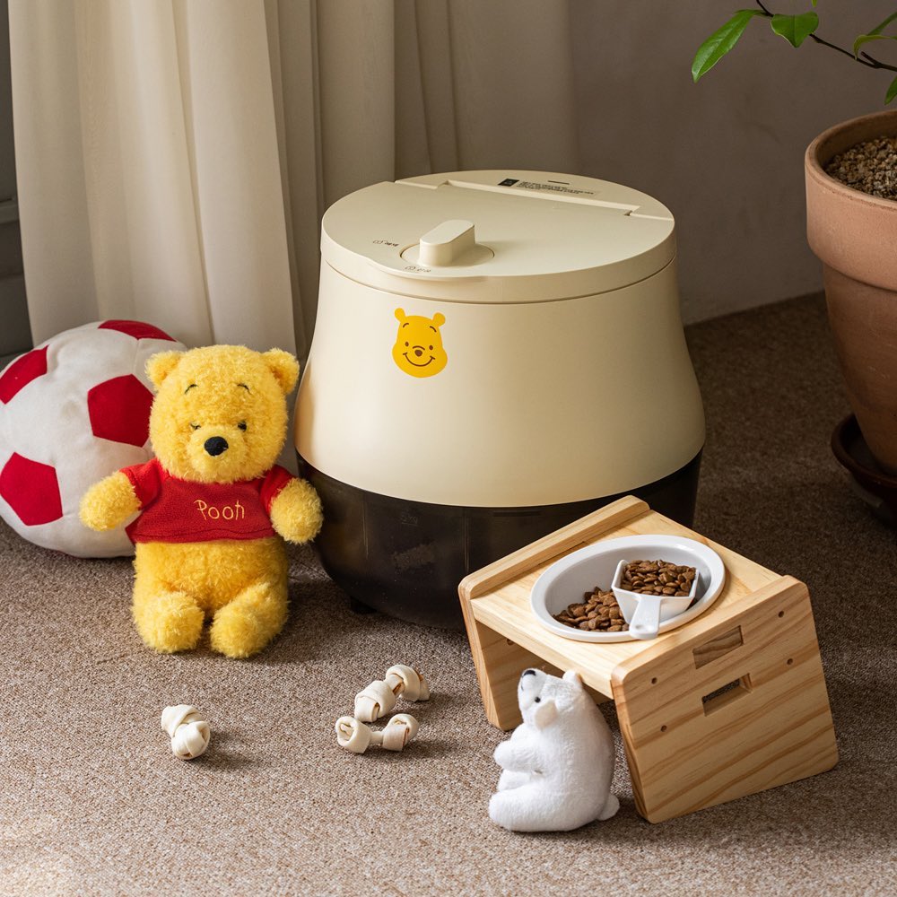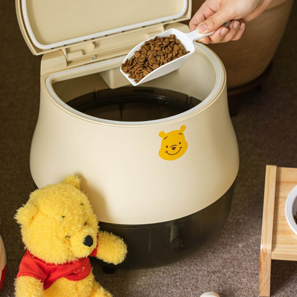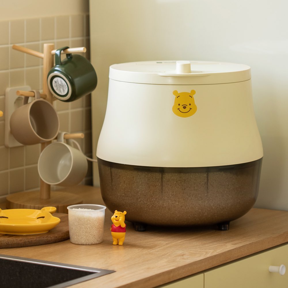 ▼再來是小編也超想帶走的單品小熊維尼儲米箱,胖胖的鵝黃色桶身一樣印著維尼的招牌笑臉,大概會為了想看他而一直不斷開米箱(誤)而且這款儲米箱機能相當高,有智能轉鈕可以一鍵鎖上,這樣就能防止米粒受潮,另外容量也高達10kg,個人自炊或是家庭使用都方便~另外如果不儲放米的話,也可以拿來收納狗狗的飼料,完全是一箱多用!