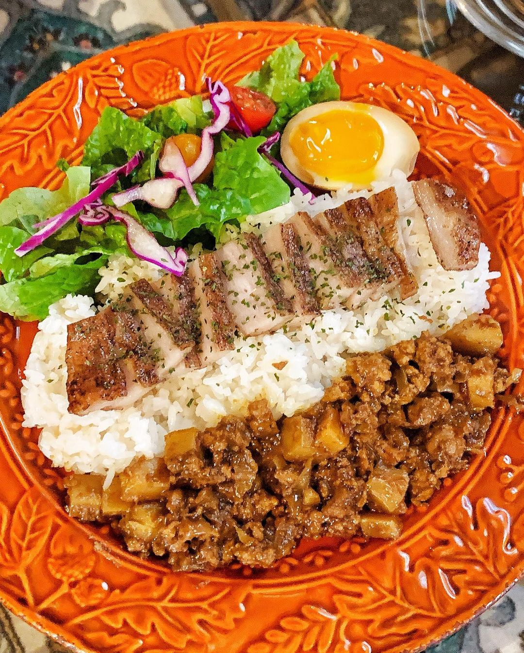 ▼店家的招牌「客家鹹豬肉佐特製乾咖哩肉醬飯」絕對必點!鹹豬肉醃漬的很入味,薄片咬起來外頭酥脆帶點鹹香,搭配濃郁的乾咖哩讓人一口接一口停不下來~另外「日式唐揚雞肉佐番茄燉肉風味飯」也是人氣品項,串燒式的擺盤有種日式風格,搭配生菜整體配色相當鮮明,微帶點辣度的蕃茄燉肉配上白飯根本大滿足!而喜愛輕食的朋友們不妨可以試看看「香煎培根蛋佐藍莓辣根醬可頌」,莓果的酸甜滋味搭配生菜和培根,香酥的可頌豐富整體的口感,著實美味。