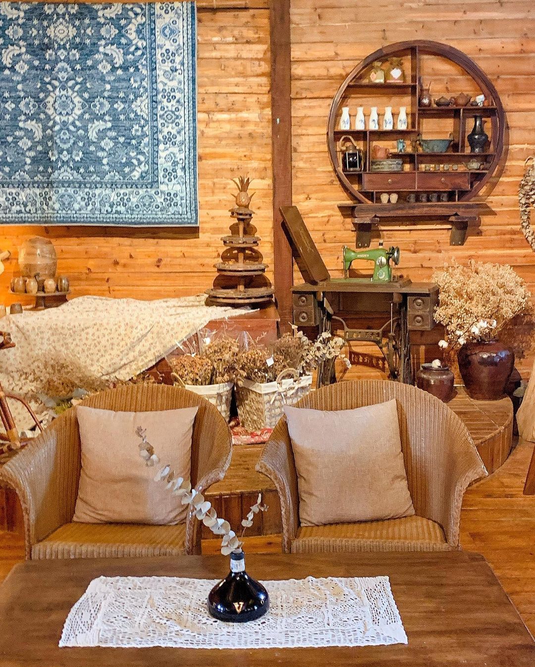 ▼門口放著咖啡廳的手繪招牌,由於開在傳統客家村莊,因此取名為「Hakkafe’」,代表客家+咖啡的意思,鮮明的配色很俏皮可愛,一眼就會注意到它。而踏入室內後,裡面的裝潢認真超漂亮的(轉圈)~所有家飾都是由老闆一家人包辦,木製傢俱、花卉到古董,整體的空間散發濃濃懷舊感,每個小區塊都深具特色,舒適自在地想直接入住下來~