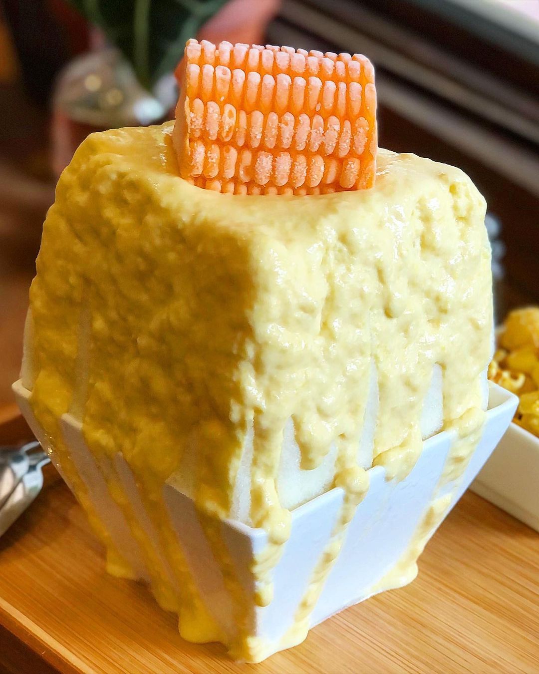 ▼這碗到底是啥?!不但冰酥的淋醬是象徵玉米濃湯的金黃色,吃起來竟然也跟玉米濃湯一樣鹹甜鹹甜的,這滋味、這口感,完全像在吃冰的玉米濃湯啊~重點是,上面竟然還真的放了玉米!