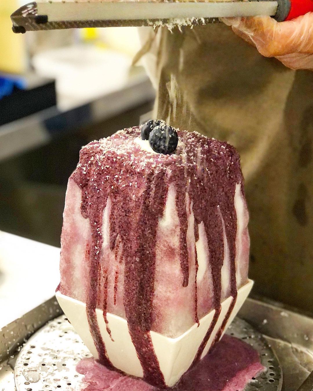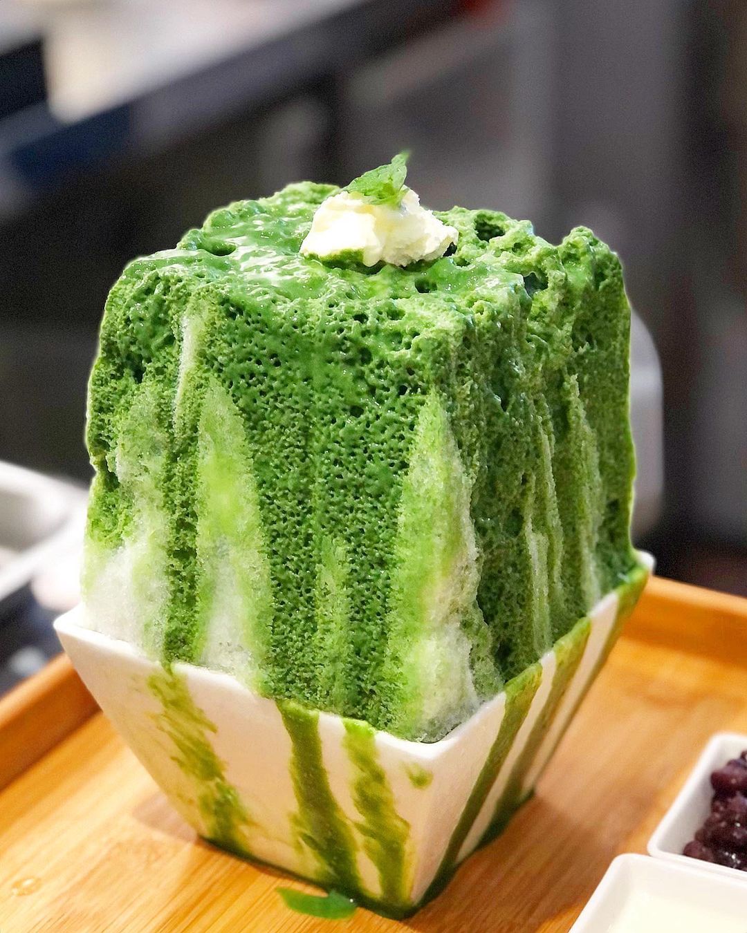 ▼不敢嘗試新口味,想要好好享受吃冰的人,也可以選擇人氣「抹茶冰酥」,抹茶醬淋好淋滿,搭配藏在冰裡的紅豆餡+脆片,卡滋又綿密的口感超美味;夏天消暑則必須來碗超大份「藍莓冰酥」,果香消暑超療癒~