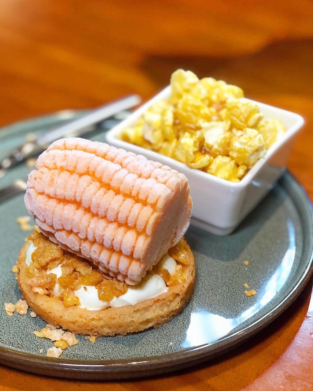 ▼不過別擔心,這玉米其實是冰淇淋假扮的啦!然而正當鬆了一口氣,突然看到跟著冰酥一起上桌的,竟然還有一旁的「胡椒罐」,老闆你該不會是要我…?