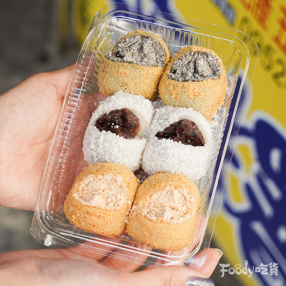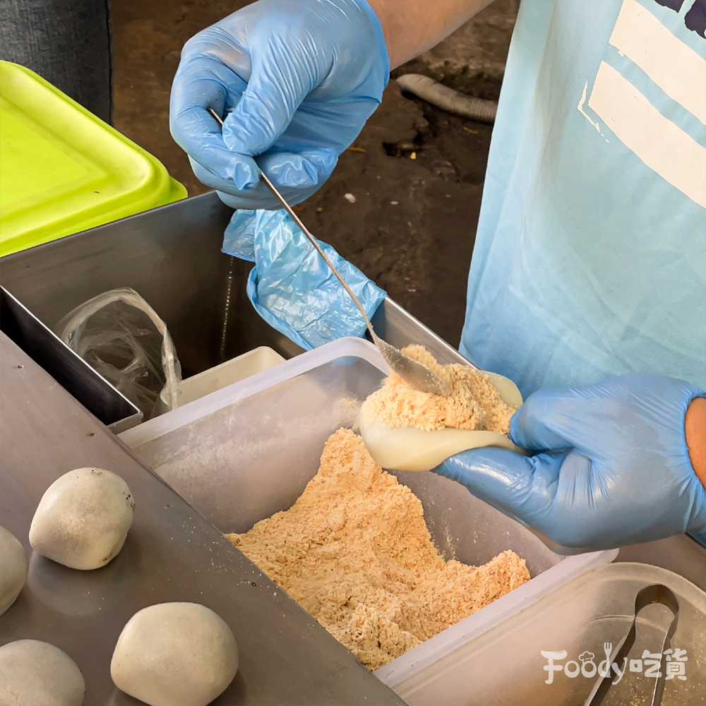 ▼來買麻糬絕對不要只有吃而已,老闆在包麻糬的過程也堪稱藝術,麻糬本身充滿延展度,在老闆手上可以越「ㄍㄧㄥ」越大卻不會開洞,最後包進滿滿的餡,包麻糬過程光用看的就療癒;經典花生、芝麻、紅豆三種餡都是包好包滿,不會過甜的滋味搭配麻糬本身的香氣與軟糯Q彈口感,麻吉控一定會愛上!