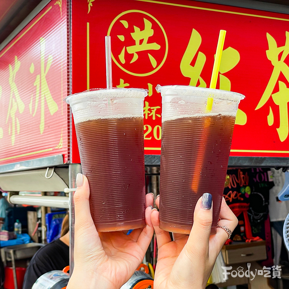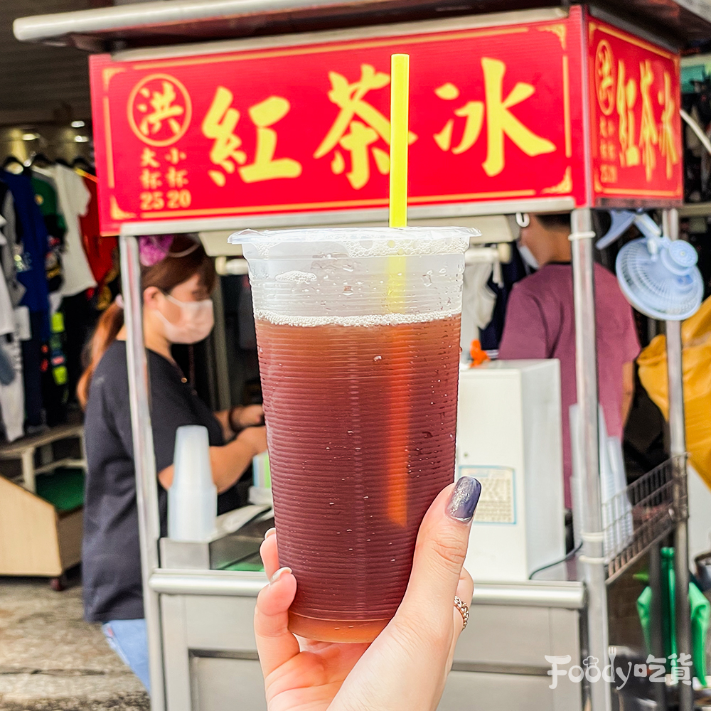 ▼六、洪紅茶冰:最後最後,吃飽怎麼可以沒有飲料搭配呢?雖然向上市場週邊就有一間人氣連鎖手搖,但是既然都來到這邊了,當然要試試非常有名的當地特色紅茶冰啦~這家「洪紅茶冰」只賣紅茶冰,平價大杯25元,冰冰涼涼的古早味復刻紅茶,喝起來就只有一個爽字可以形容啊!