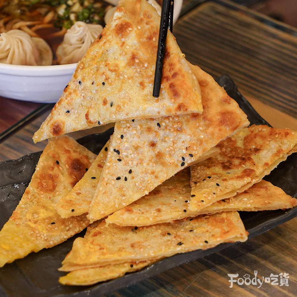 ▼來牛肉麵店吃東西,怎麼可以少了餡餅類呢?其實這款「綠豆沙鍋餅」本來小編是沒有點的,直到老闆默默湊過來說「這個才好吃啦~」,才會腦波弱馬上點下去XD。,看似薄薄的餡餅,其實豆沙餡非常飽滿,可以感受到整層沙沙的口感,優雅不膩的甜味搭配餅皮酥香,老闆沒有讓小編失望啊!