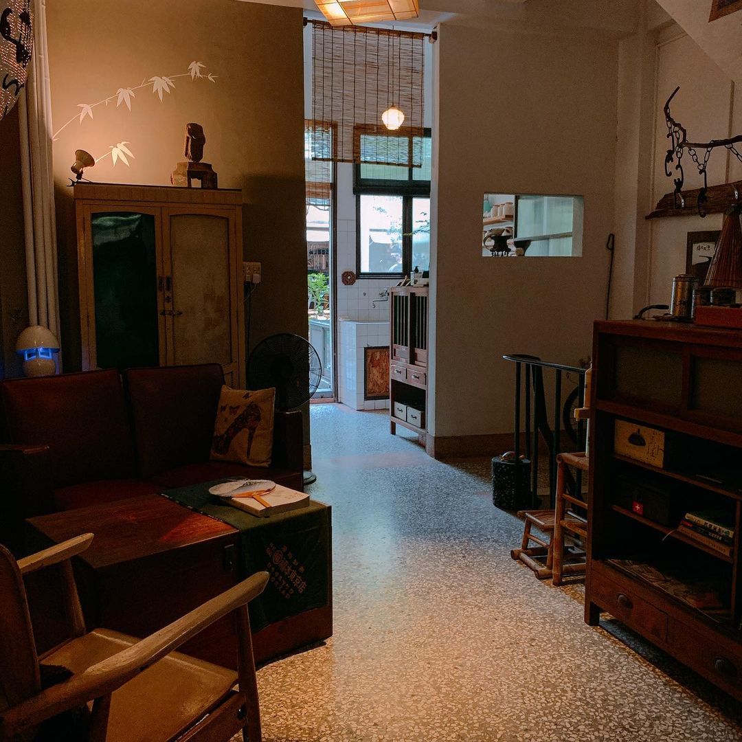 ▼「水天」店內的設計古色古香,超過百年的老宅經過老闆精心佈置,保有過去的斑駁感同時也注入了一股新創元素,許多的木質調傢俱配上昏黃色燈光相當有復古感,讓人忍不住拿起相機不斷按下快門。