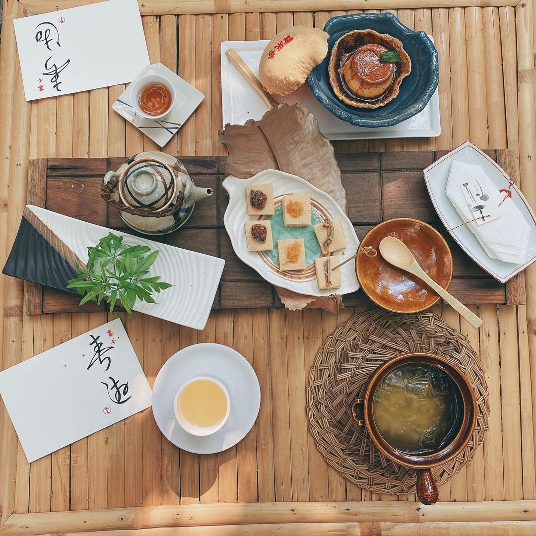 ▼店家的餐點都是以茶飲搭配一份小點心的組合方式,其中花葉套餐裡的「又甜又辣」人氣滿滿,凡是去過的饕客們都會點來嚐嚐,六個小點內酸的、甜的、辣的都有,放上辣小魚乾的巧思真的很有創意~而真珠的「甜蜜小宇宙」也是超級特別!台南古早味椪餅內放置的竟然是布丁(驚)無論是造型或者口味上都相當創新,好吃又好拍!