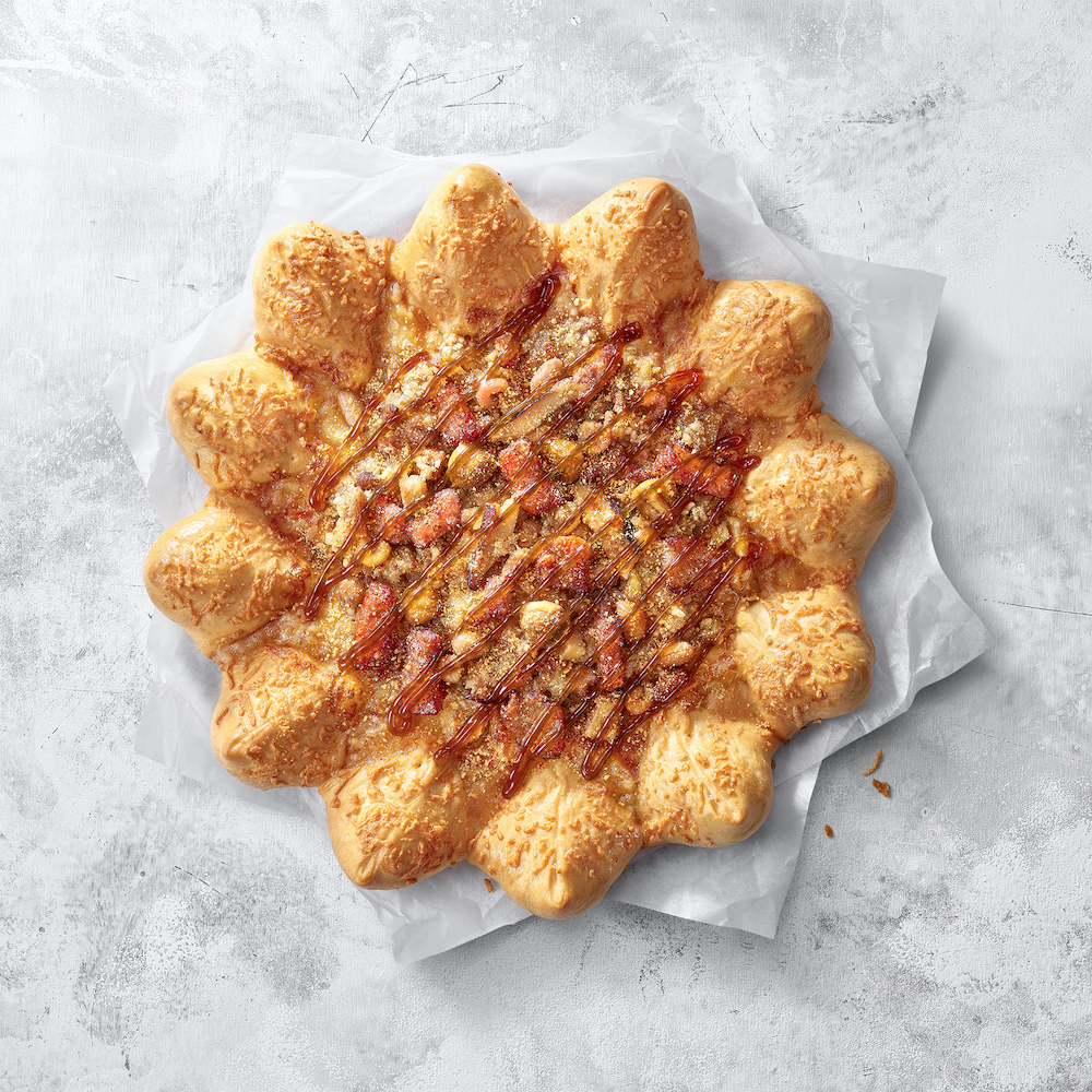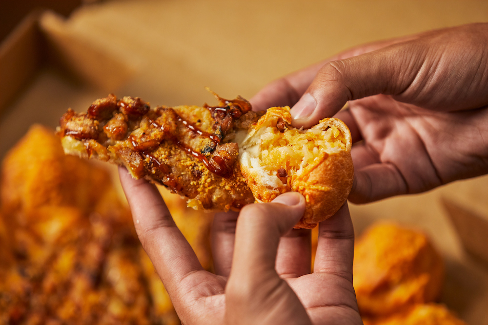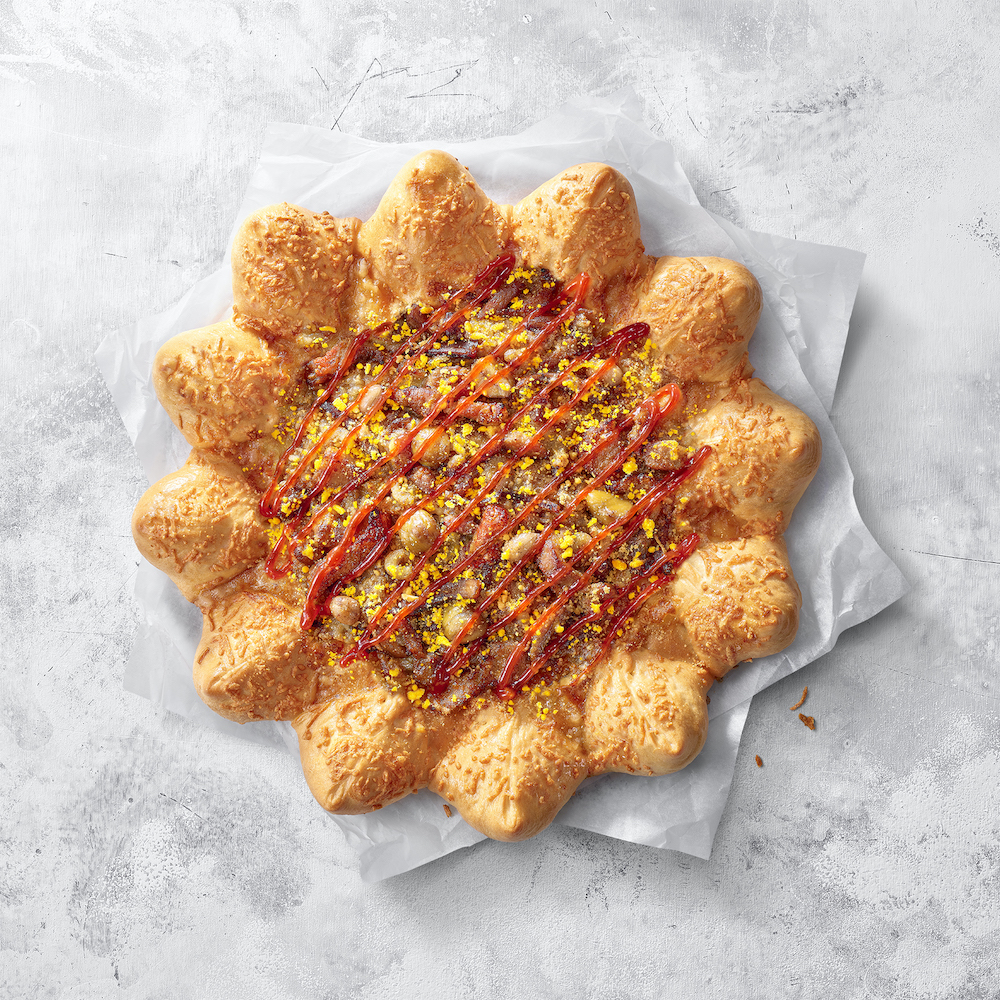 ▼兩款比薩外圈皆搭配獨特的「XO醬一口粽餅皮」,一口咬下瞬間散發XO醬拌炒糯米的香氣,滿滿12顆一口粽,每口都吃得到極品XO醬香辣又開胃的濃郁海味。