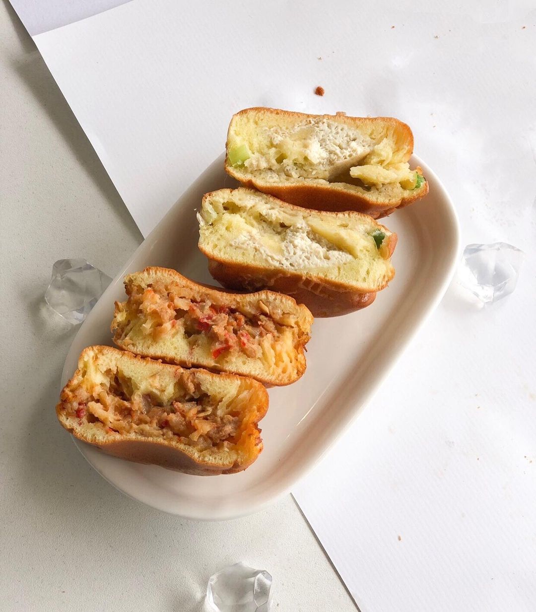 ▼全新夏季口味「臭豆腐雞蛋糕」內餡超澎湃~扒開裡頭有超大塊的臭豆腐,不惜成本加入滿滿青蔥,一口咬下多汁又有臭豆腐的特別香氣,與雞蛋糕的甜香搭配得恰到好處,完全會令人愛上!另一款「打拋豬雞蛋糕」具有泰式的風味,碎豬肉微辣口感搭配雞蛋糕,創意十足外,爽口程度也滿分!