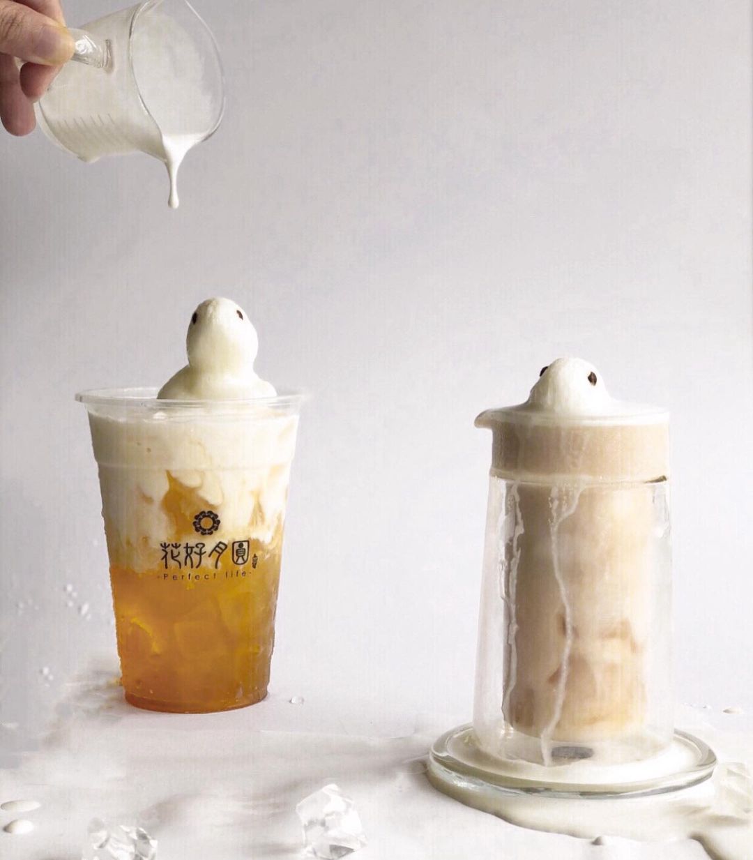 ▼此次的飲品「兔兔來澡茶」也是超級可愛!!(轉圈)以香醇牛奶製成的兔兔冰磚泡在茶湯中,看起來就像在泡牛奶浴一樣,還沒喝就先被療癒一波~茶湯共有紅茶、綠茶、烏龍茶等基底,對於喜愛茶飲的朋友們來說選擇也是相當豐富,可以一次大滿足!