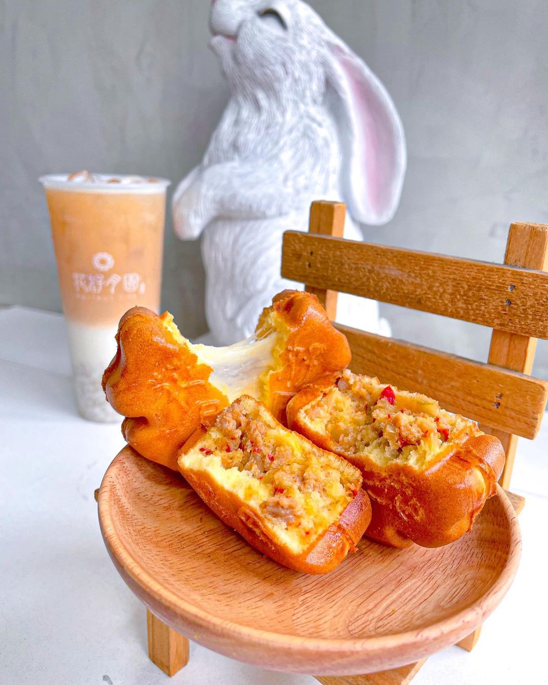 ▼以兔兔造型和月球為品牌形象的「花好月圓」,不僅在手搖飲上屢屢創新,連他們最熱賣的朵朵雞蛋糕都直接upgrade,口味以「臭豆腐」和「打拋豬」兩種鹹料理為主,原本甜香的雞蛋糕瞬間增添了「重口味」,鹹香滋味讓人超好奇!