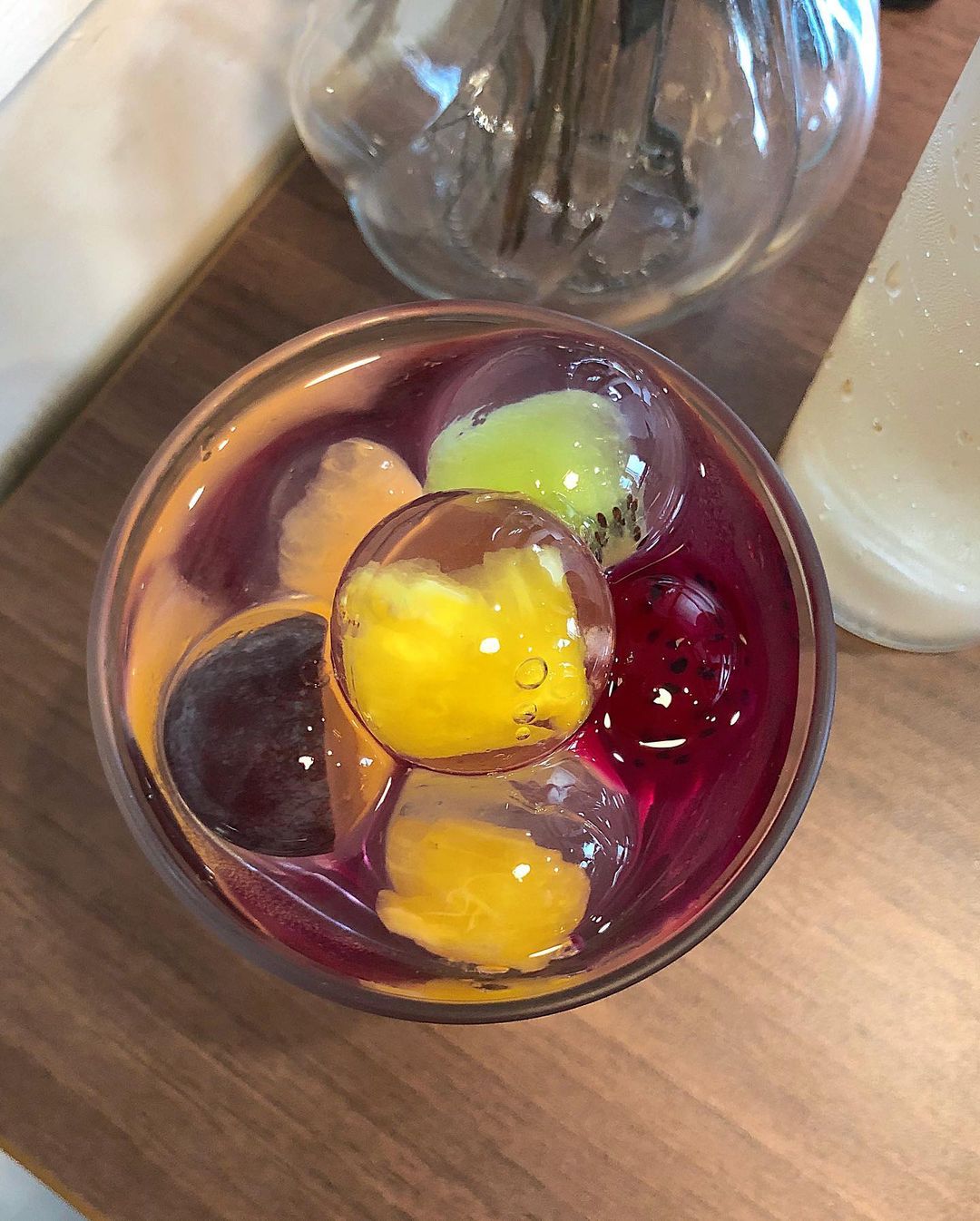 ▼除了刨冰山,店內還有販售水果Q球杯,老闆堅持用新鮮水果丁製作成果凍球,晶瑩剔透的小巧造型,光看就已經降溫一半,水果Q球不會太甜,帶有清爽的水果香氣,QQ的口感好吃一直吃!