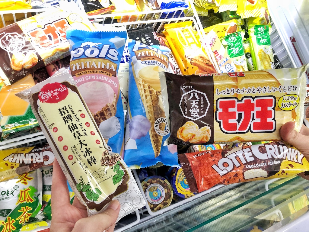 ▼而日系冰品「Crunky脆心巧克力雪糕」(售價39元)綿密香草冰淇淋淋上香濃巧克力脆皮,外層添加的小麥米花讓口感更富層次。另一款則是日本名店八天堂監製的「夾心雪糕八天堂卡士達口味」(售價65元),濃香卡士達冰淇淋與酥脆的最中餅結合,棋盤式的餅皮設計還能剝一半與朋友一同分享,美味加倍~
