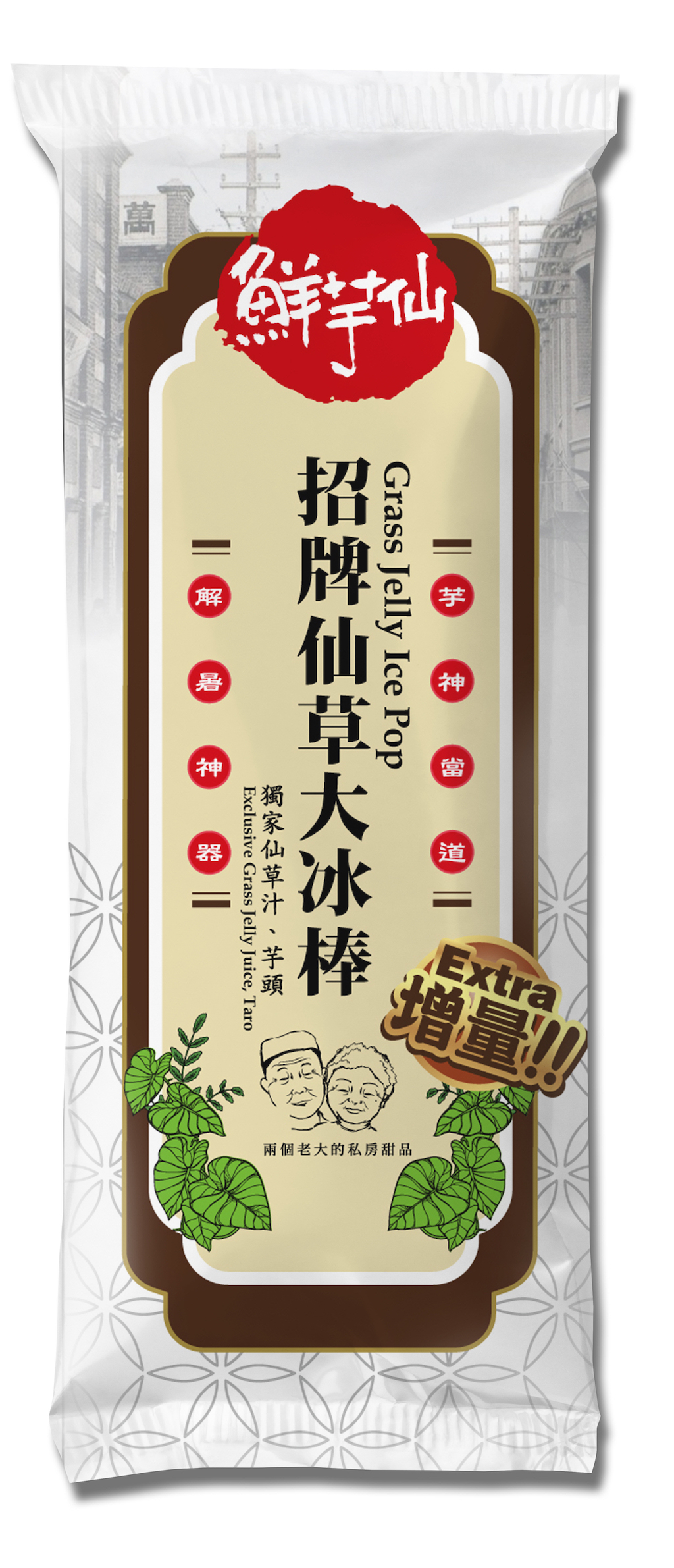 ▼仙草控和芋頭控可以試試「鮮芋仙招牌仙草大冰棒」(售價35元),芋頭水冰外皮搭上內層仙草汁冰淇淋,QQ的芋頭寒天包覆其中,每口都大滿足!