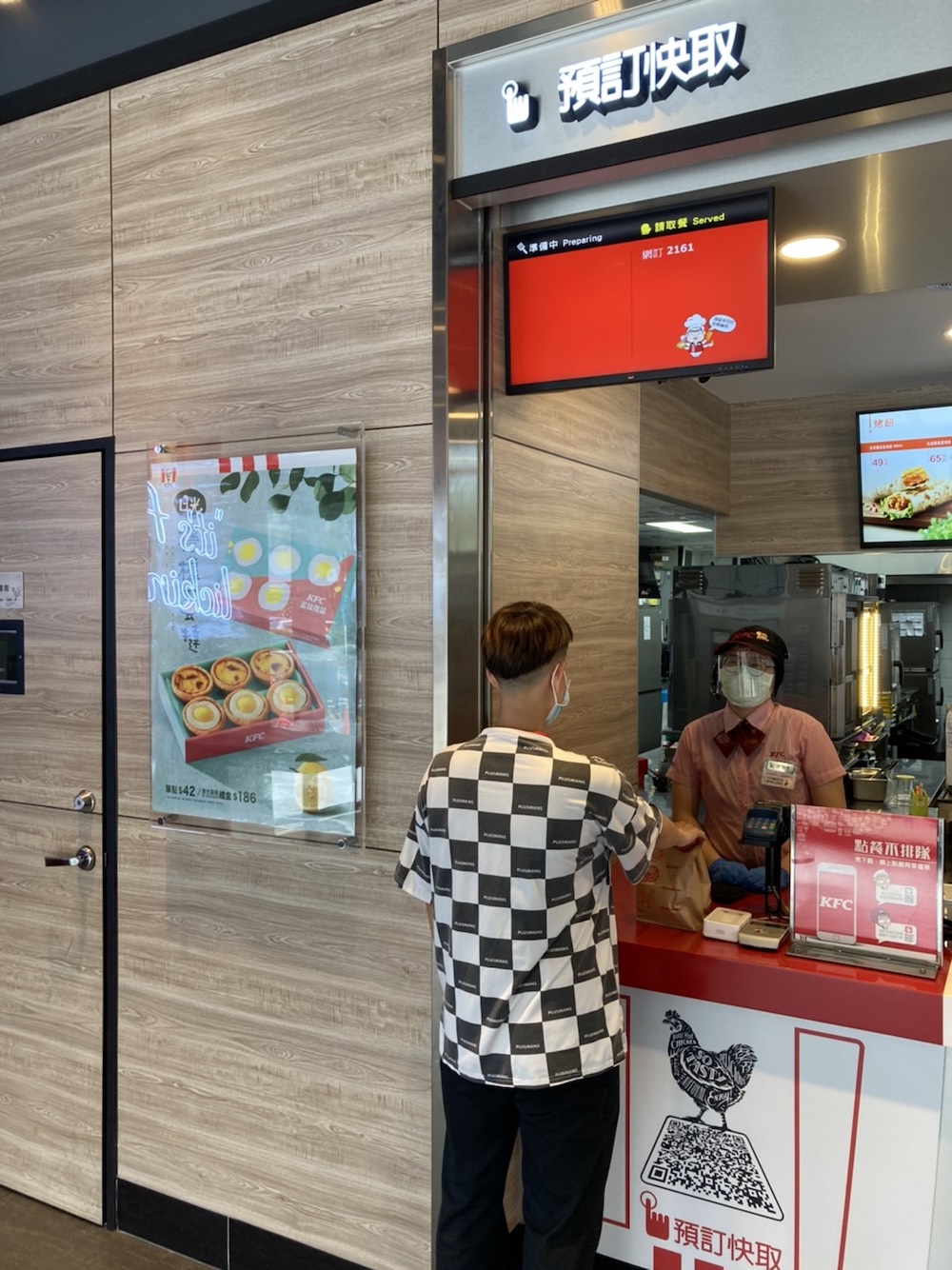 ▼肯德基建議消費者多加利用「預訂快取」服務,透過網路預訂後於指定時間到店取餐,店內也設有預訂快取專用取餐櫃臺,以減少外帶等待與接觸時間。