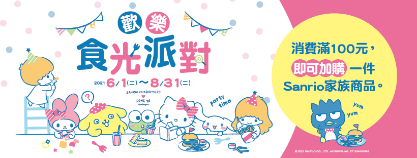 活動:凡來店消費滿100元,可加價購一件三麗鷗家族限量商品