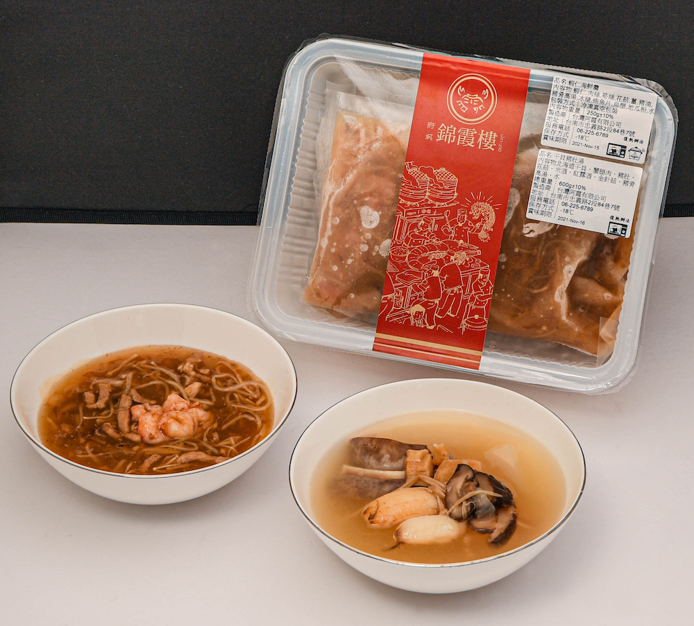▼此外也與在地飄香超過80年歷史的阿霞飯店旗下品牌錦霞樓,以兩道經典湯品「花菇干貝豬肚湯」以及「鮮蝦海鮮羹」,輕鬆將傳統老台南的湯品端上桌。