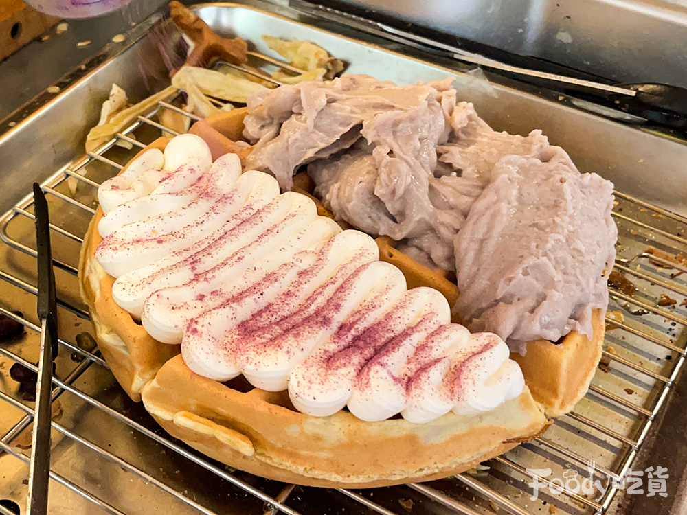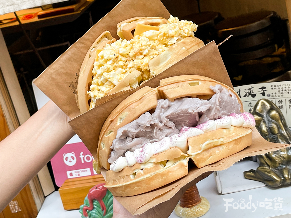 ▼四、甜漢子,邊吃邊逛哎呀時間咻咻咻來到下午,是下午茶的休息時間了(笑),說到吃甜點永遠都有一個專門的胃!最狂鬆餅今天就讓你們見識見識,顛覆想像的南波萬鬆餅!料滿滿的這款啥款!走一個浮誇系的鬆餅路線,熱呼呼的鬆餅夾著芋泥鮮奶油瀑布,每一口有滿滿療癒感,吃過的人人都誇!除此之外也可以try try起司蛋沙拉口味,老闆放料不手軟,使用溏心蛋製作,蛋沙拉吃起來超級滑順,估溜~就滑進肚子了(ノ∀`*)