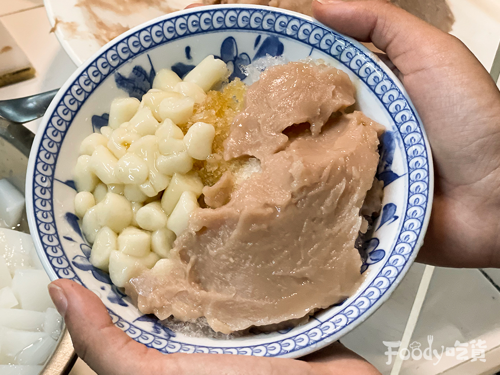 ▼一、江水號,日頭炎炎,第一站就先出發來甲涼~內行人攏栽啊來到這裡必須來碗芋泥挫冰!綿密的芋泥香甜細緻,看看老闆毫不手軟的把芋泥裝滿碗的模樣,賣相已經太迷人ヽ(●´∀`●)ノ再搭配其他的傳統配料,紅豆、花豆、湯圓、珍珠等等,豐富的餡料完全是沒在開玩笑的加好加滿!