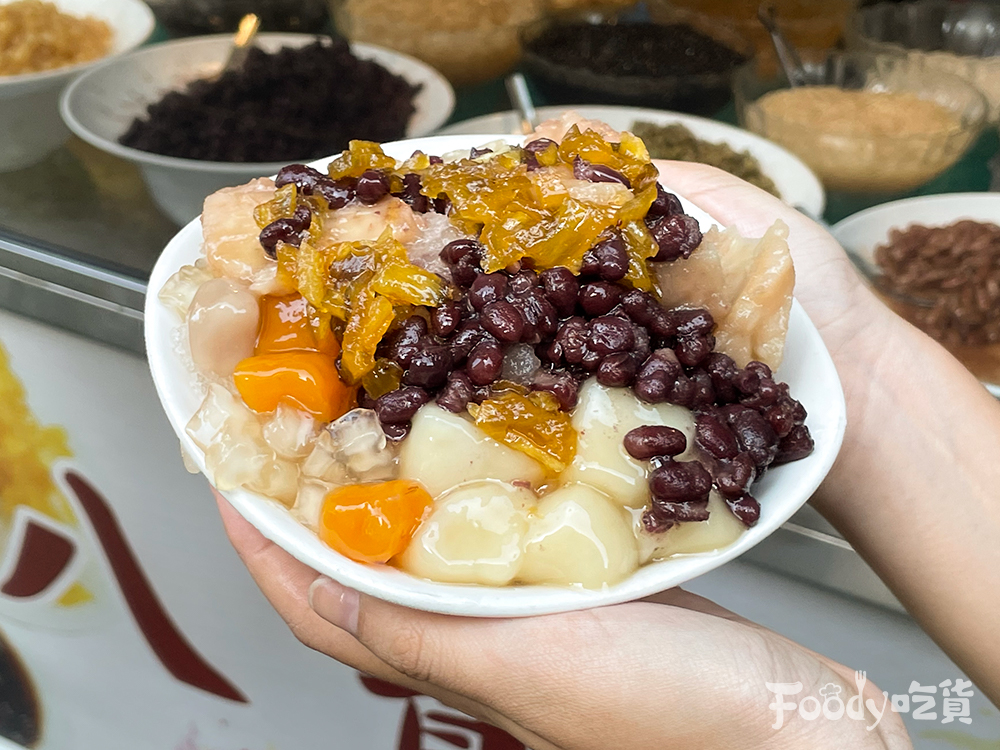 ▼三、金八寶圓仔冰、咦怎麼又是冰?夏天嘛~不吃冰還能做什麼!!!(很激動) 說到這間金八寶也很厲害,除了傳統配料跟QQ有嚼勁的芋圓外,用糖熬製的鬆軟芋頭會給一大塊!甜而不膩的芋頭完全收服了我的心,給過給過d(`・∀・)b 最後還會淋上古早味滿滿的鳳梨糖。店家是用關廟鳳梨下去製作,酸酸甜甜的滋味超級清涼消暑,整個暑氣蒸發大半不見就靠這一碗~