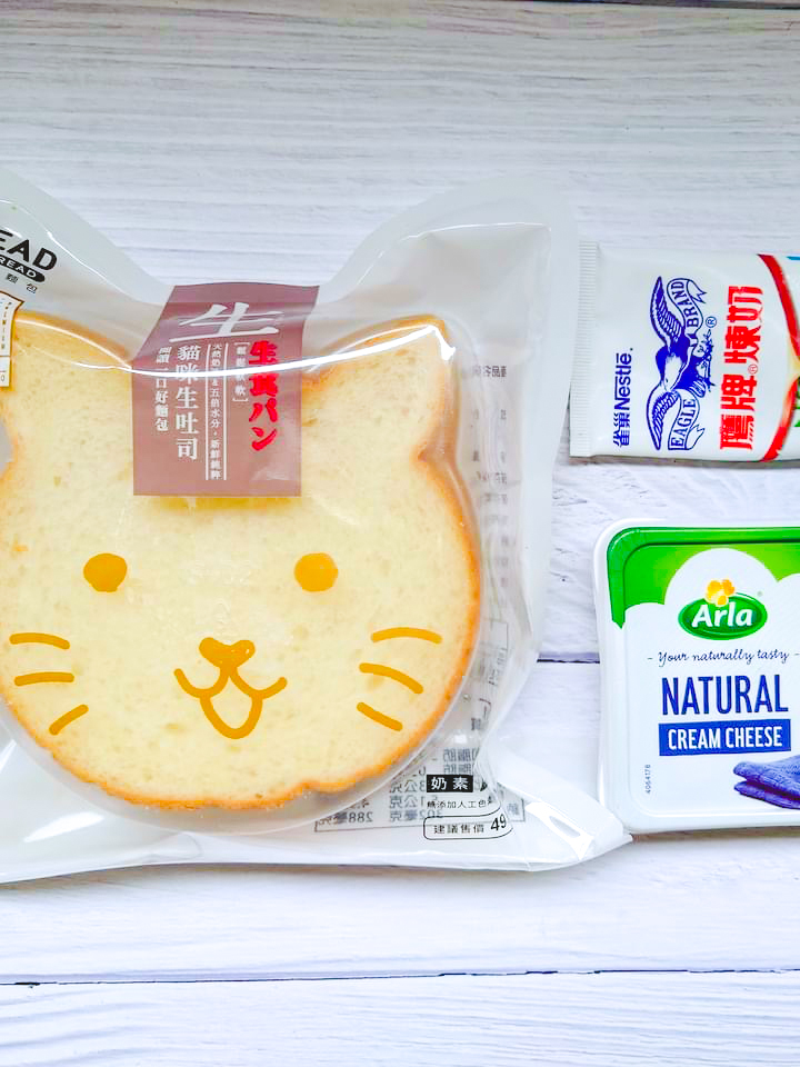 ▼這位媽媽製作白虎吐司的材料很簡單,首先當然是標準的全聯貓咪生吐司,另外還有Cream Cheese奶油起司,以及大人小孩都喜歡的香甜練乳。