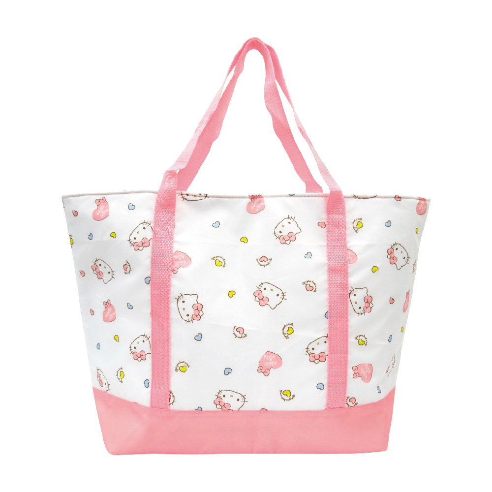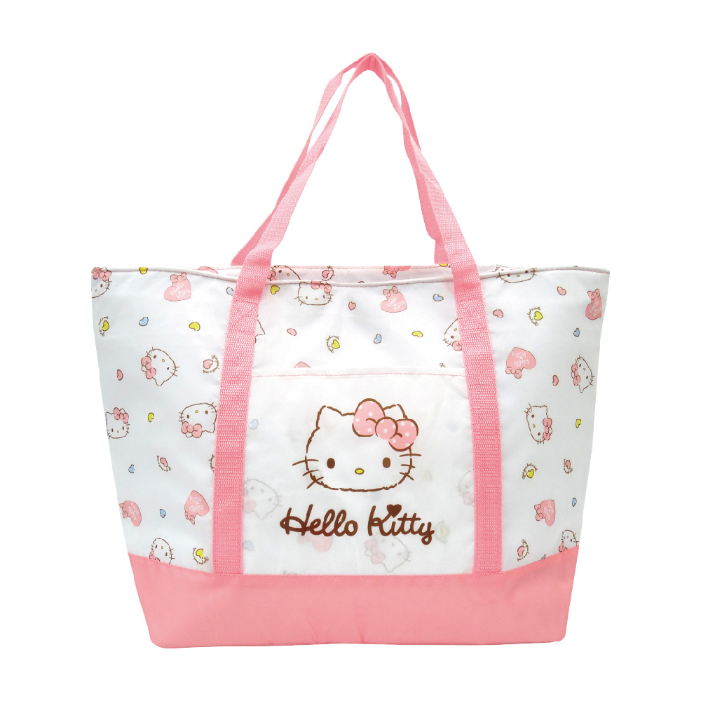 ▼Hello Kitty愛心保冷提袋,正面有可愛的Kitty大頭,可愛插畫風一看到就想收,粉白配色的經典模樣超討人喜歡,大容量超適合一次購物採買多一點東西減少出門次數,只是…有點捨不得用啦~