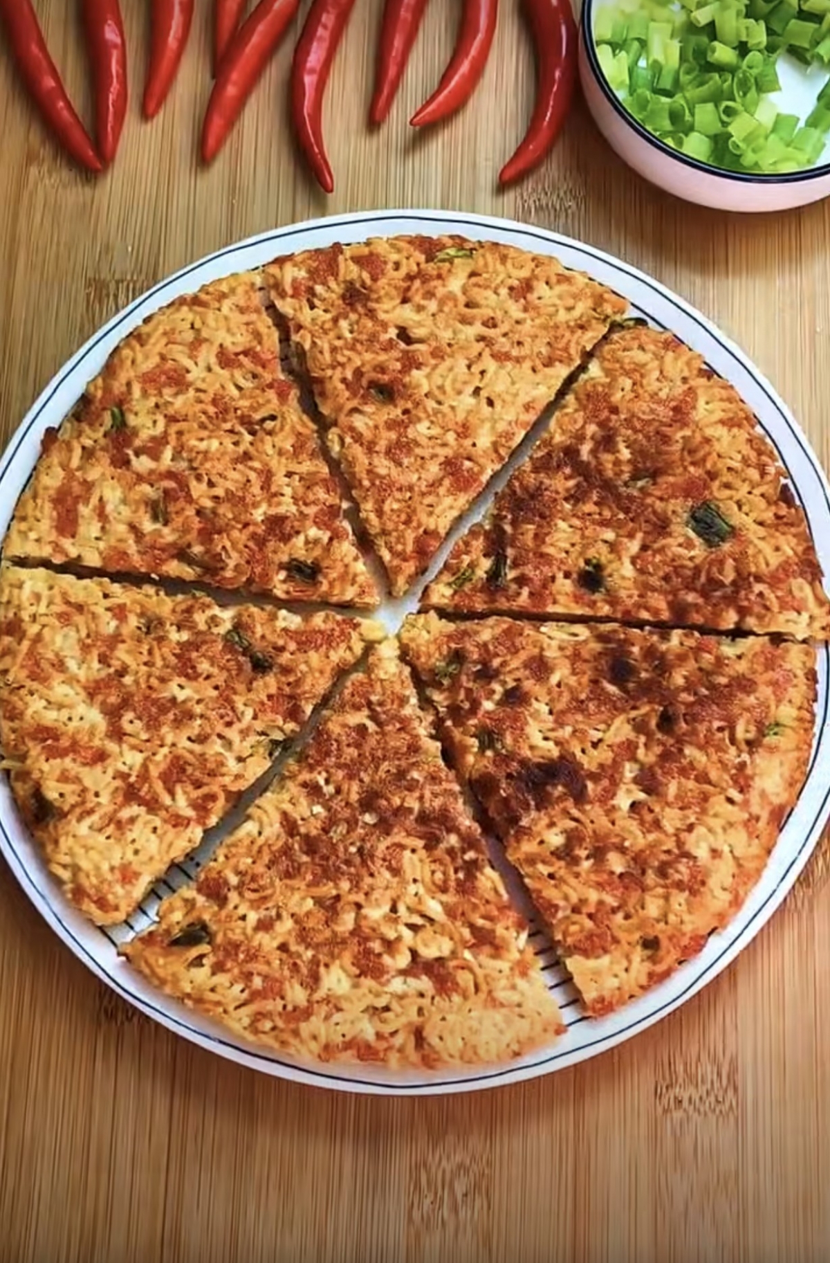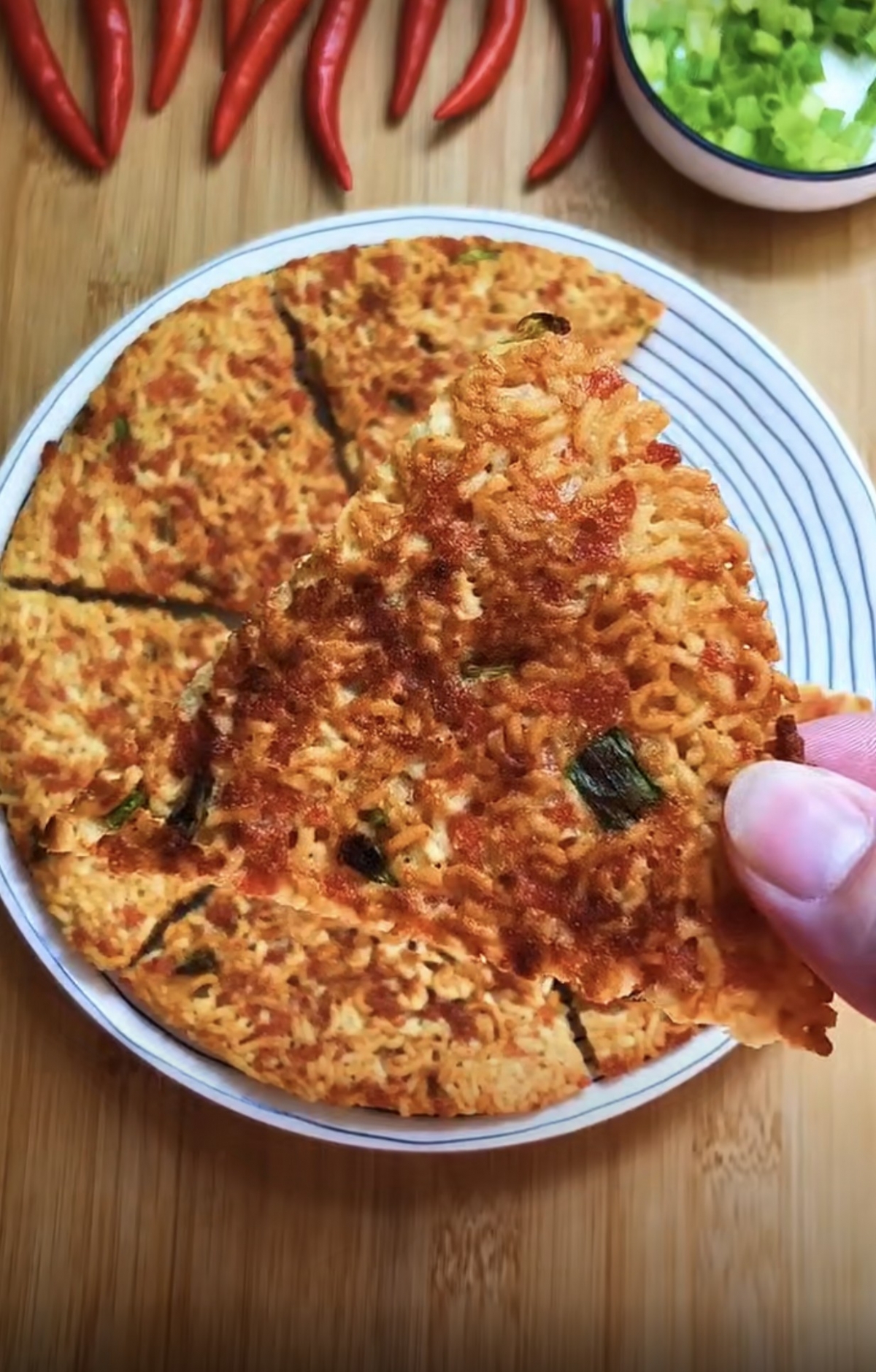 ▼起鍋後就變成金黃焦脆的泡麵煎餅了,吃起來滋味獨特,香脆爽口。