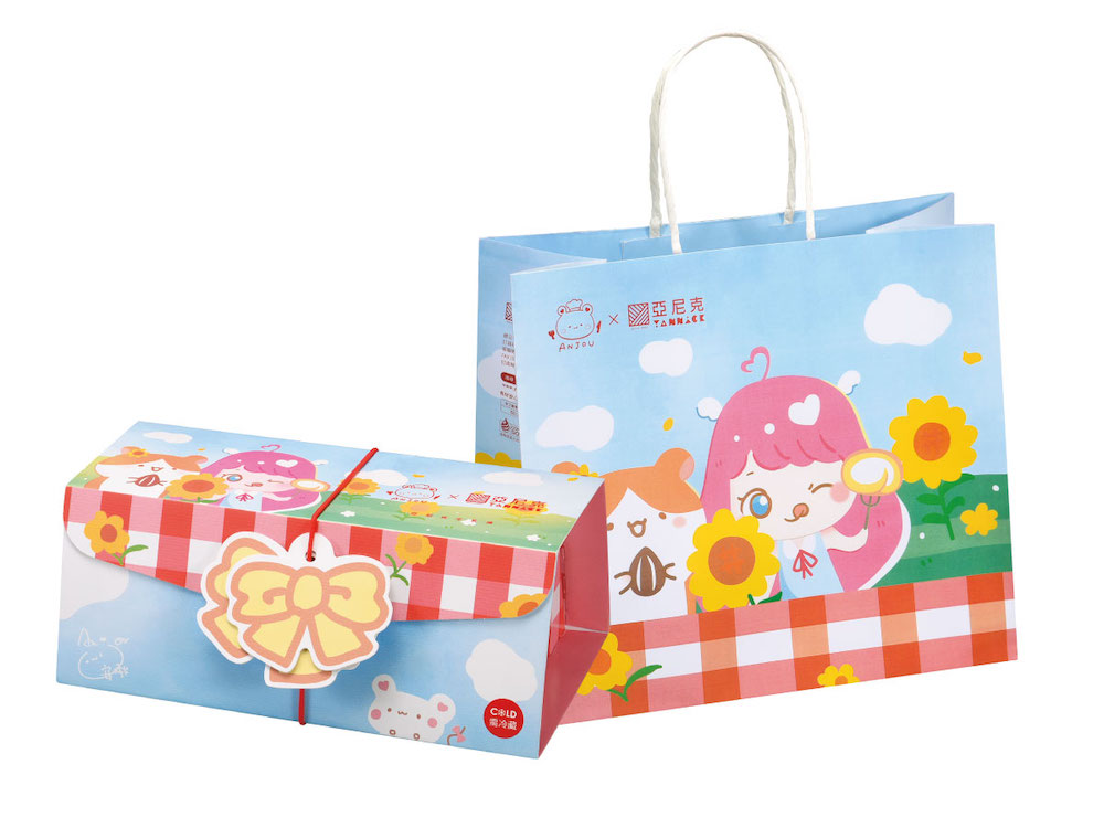 ▼這次還在生乳捲外皮上烙有安啾咪親自繪製的「安啾鼠」,專屬烙印只有聯名款限定擁有。從外盒、提袋到吊牌,皆是由「安啾咪」本人親自繪製包裝,以向日葵和藍天的印象進行創作,搭配鄉村風格野餐墊格紋設計,希望傳達與安啾咪一起在向日葵花田享用生乳捲的幸福、感受明媚夏天的到來。
