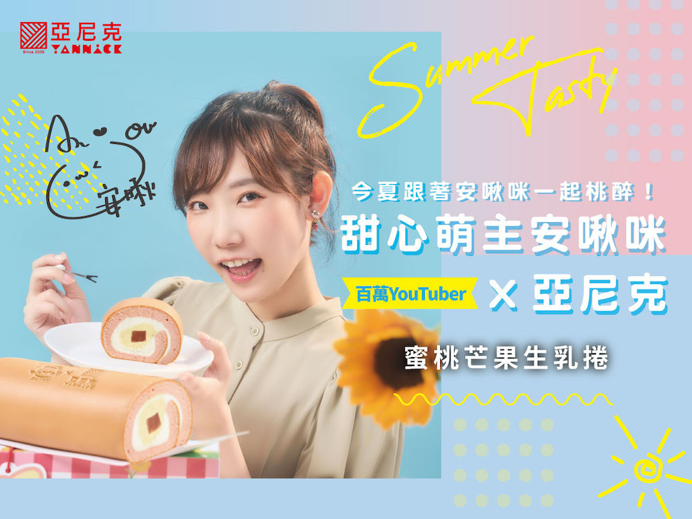 2021年06月01日團購超人氣的好吃生乳捲「亞尼克」,近期推出多款粉色系生乳捲萌翻少女心,這次承接這股粉紅風潮,邀請百萬YouTuber「安啾咪」,共同創造出甜美、粉嫩系的「蜜桃芒果生乳捲」,讓大家宅在家也可以享受夢幻逸品。