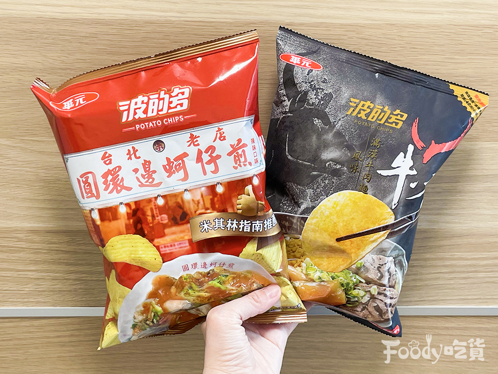 ▼波得多與米其林必比登推介「牛店」聯名,推出「波的多洋芋片牛店滿漢牛肉麵風味」,吃得出牛肉、牛油的濃郁香氣;以及另一款與米其林餐盤推薦「圓環邊蚵仔煎」聯名,經典蚵仔煎搭配甜辣風味,2款同樣是全通路獨家登場。(各30元)