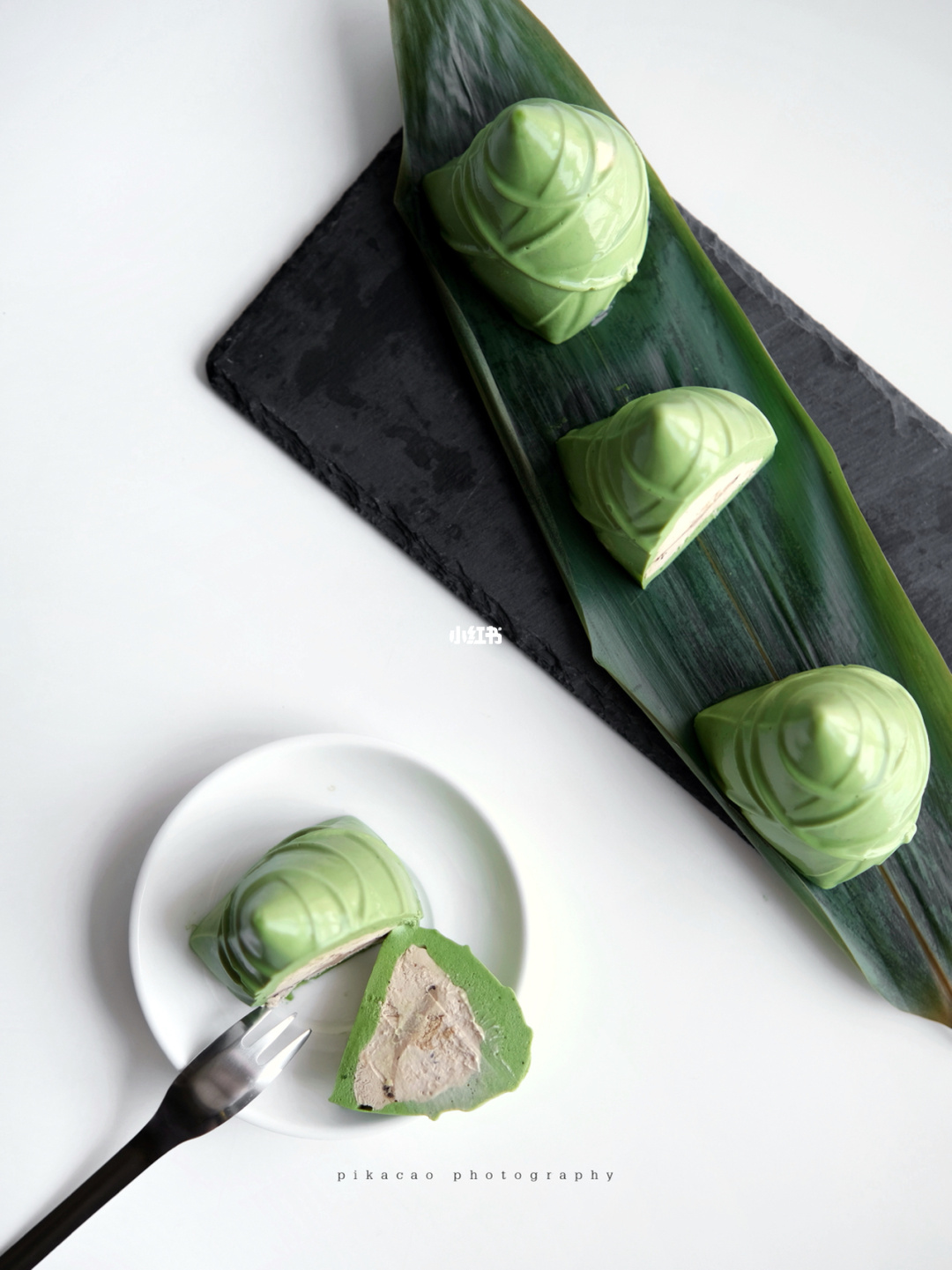 ▼網友大神手做的這款甜點造型完全神還原真的粽子,綠色的粽葉用抹茶慕斯替代,而一般吃肉粽的內餡則是用咖啡慕斯取代,逼真的做工讓人會瞬間錯亂這到底是鹹食還是甜食,但不管怎樣都想吃就是了~(笑)