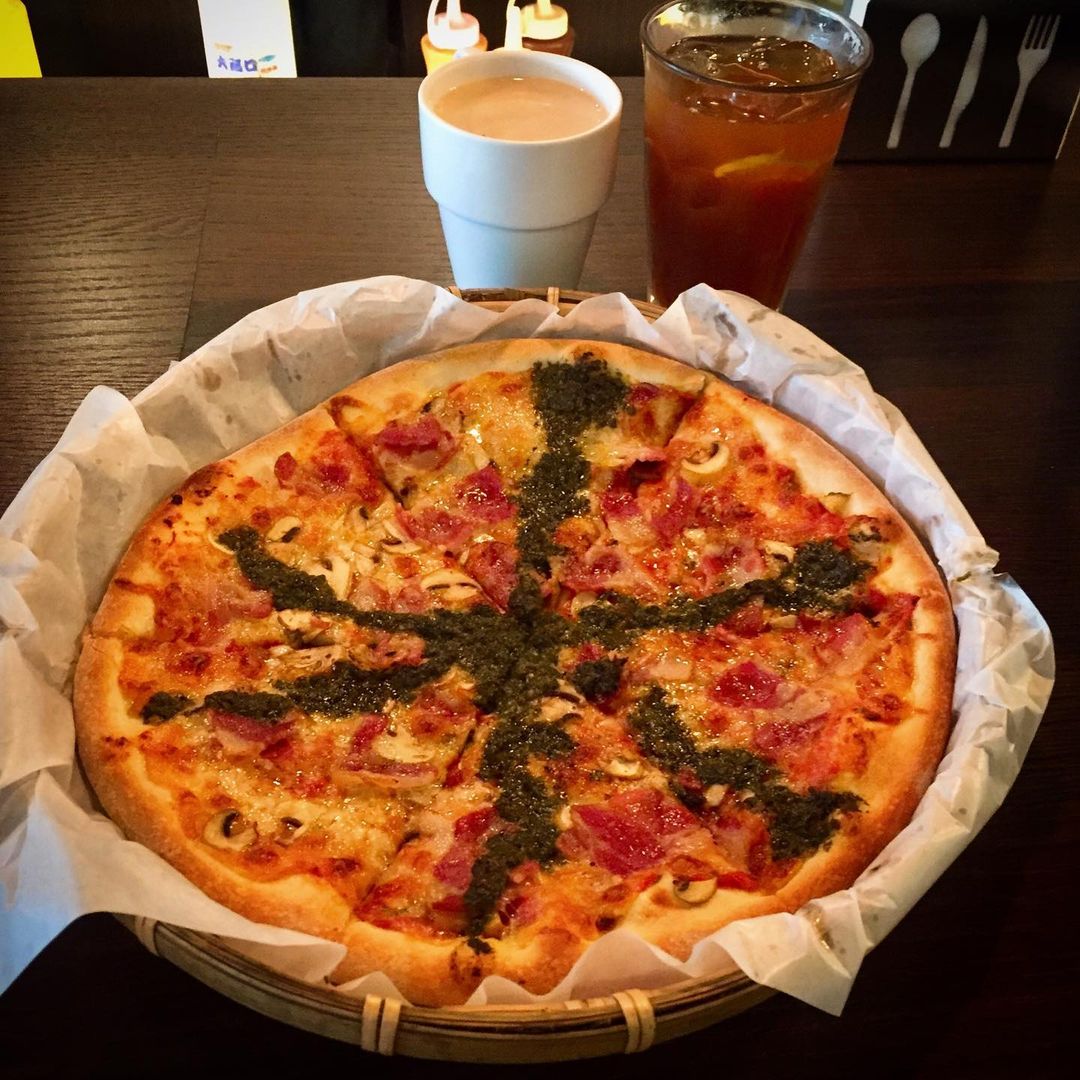 ▼「Hand on the pizza 手在披薩」最特別的口味就是這款「江雁婷」…這根本是人名吧喂!沒錯,根據老闆表示江雁婷小姐是他的前老闆、也是教會老闆做披薩的人,將她最喜歡的披薩口味「羅勒醬+蘑菇+培根」用她的名字來當料理名,也是為了不忘本。