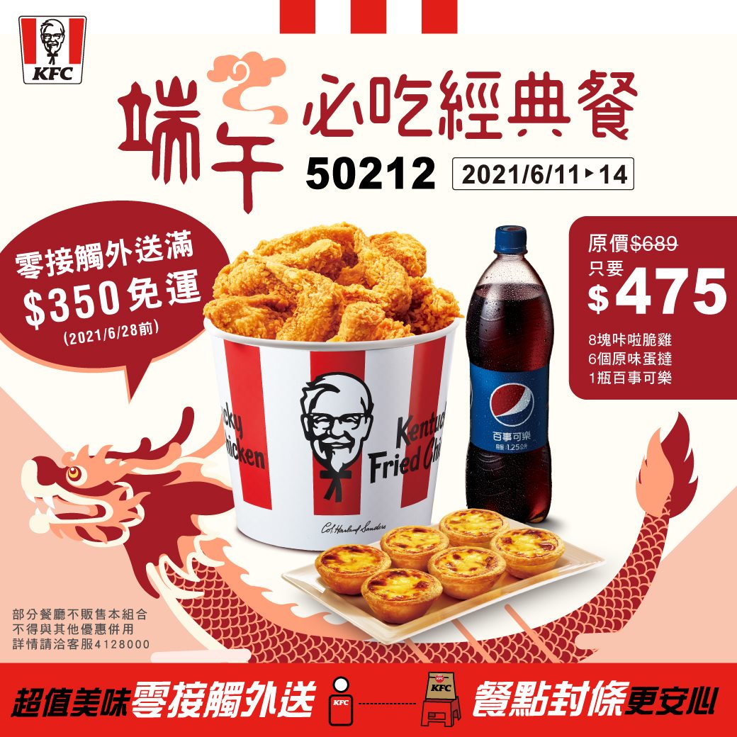 ▼肯德基日前推出8塊雞+整盒蛋撻+可樂的「端午必吃經典餐」優惠程式碼,售價475、原價689元,算起來約是69折超優惠;然而限時4天只在端午連假及前一天適用,讓人不禁惋惜「沒吃到太可惜」~