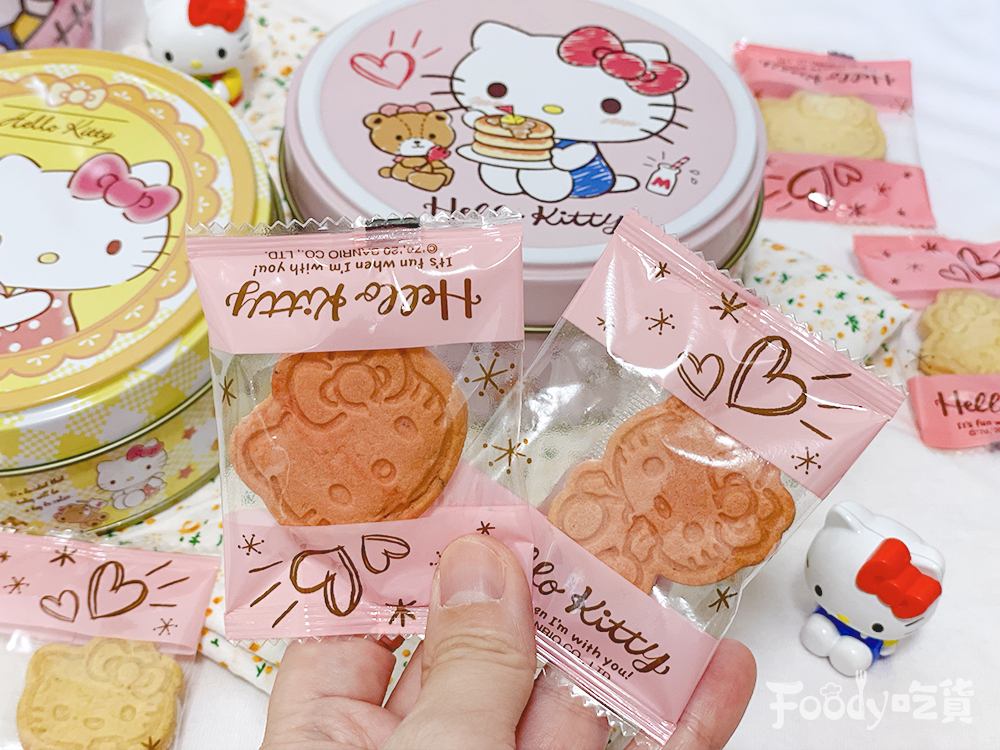 ▼Hello Kitty造型餅乾則有蔓越莓、起司兩種口味;蔓越莓風味酸甜蔓越莓果醬,口感紮實又香脆,每一口都吃得出食材的自然原味,兩款精緻HELLO KITTY造型粉紅餅乾,大頭款、全身款更是超可愛!